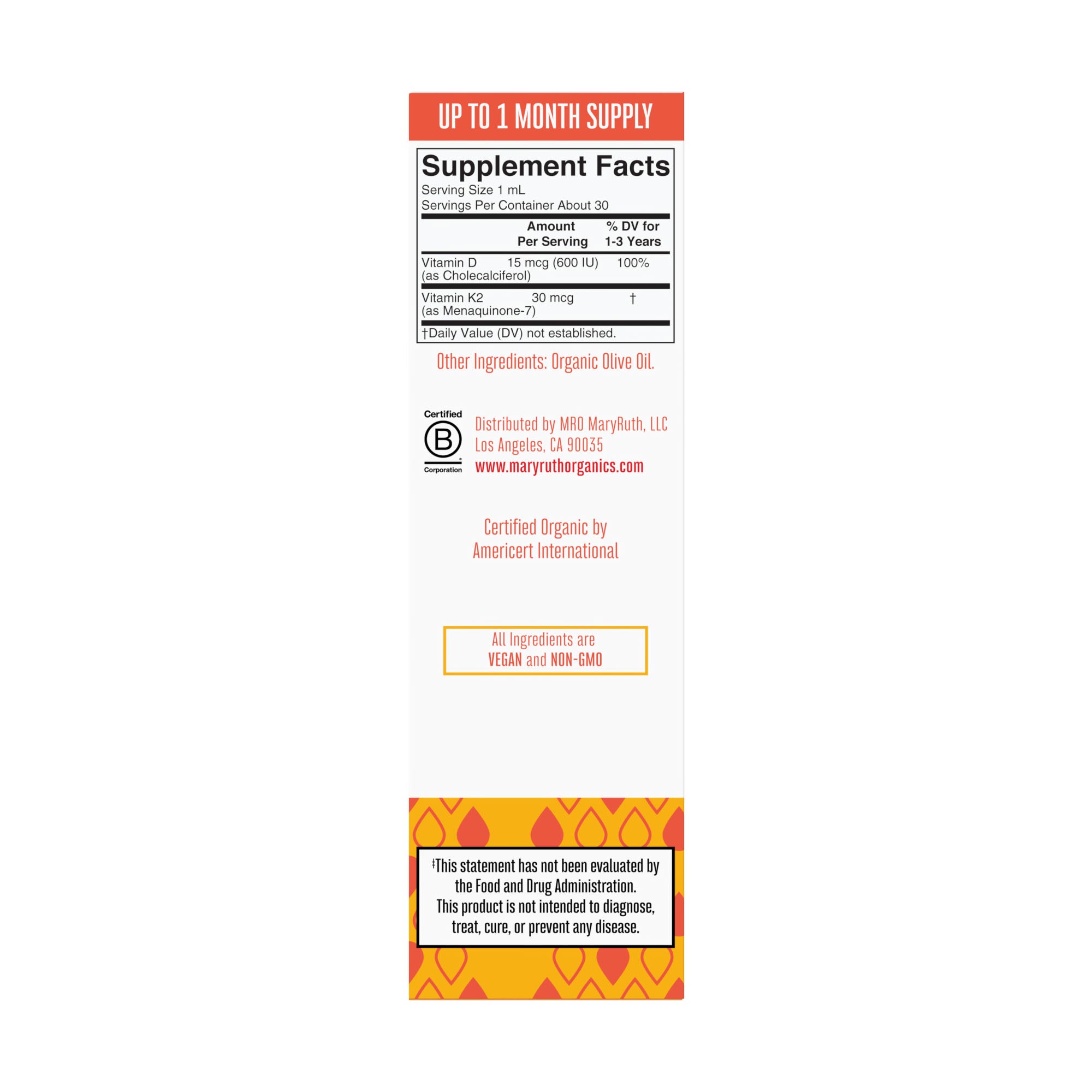 "MaryRuth's Toddler Vitamin D3+K2 Drops, Unflavored" 29ml