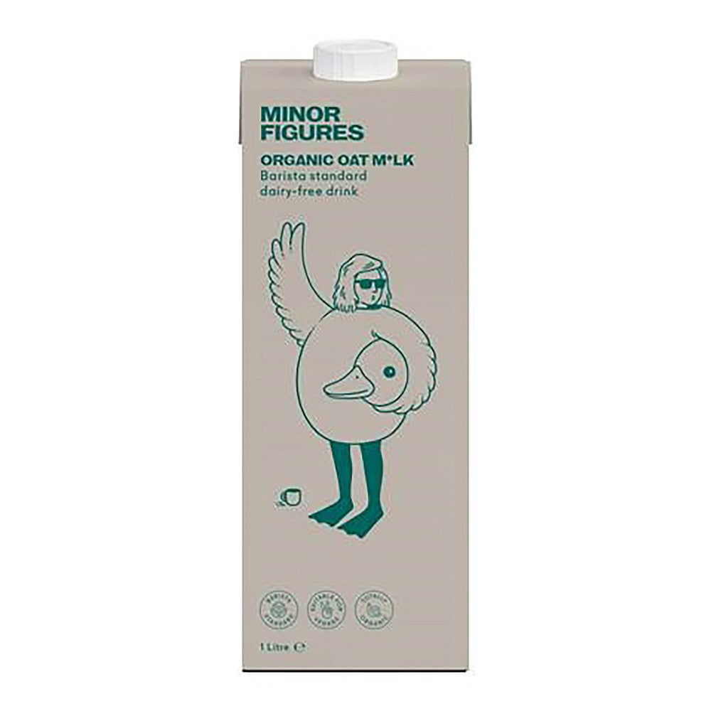 "Minor Figures Organic Oat Milk is a dairy alternative made by coffee professionals. Containing only certified organic ingredients, the Organic Oat Milk is designed to complement the true and unique flavours of the highest quality coffee. It has the perfect level of sweetness and produces a silky micro-foam when steamed, marking it ideal for baristas. Suitable for vegans. No dairy. No added sugar. It's also great in tea and on cereal"