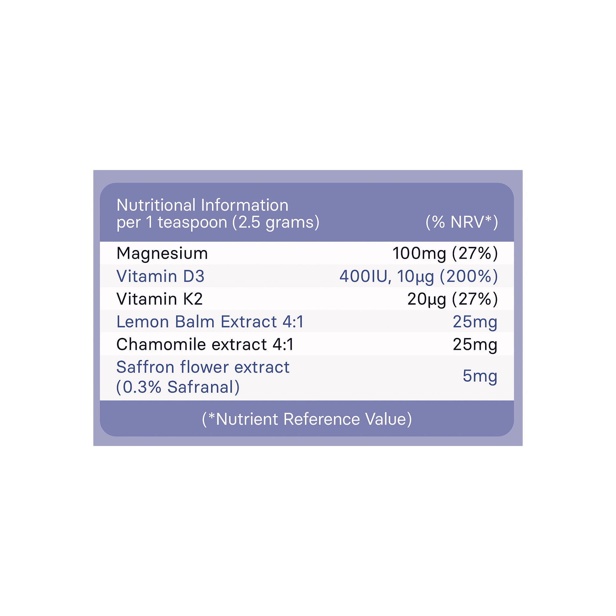 "Make bedtime better for the whole family with Unplug Kids Bedtime, a children's sleep & development supplement with a gluten free oat base containing: Chamomile, Lemon Balm & Saffron extracts to help wind down at bedtime. Vitamin D, needed for normal growth and development of bones in children, also supporting children's normal functioning of the immune system and Magnesium, to contribute to normal functioning of the nervous system."