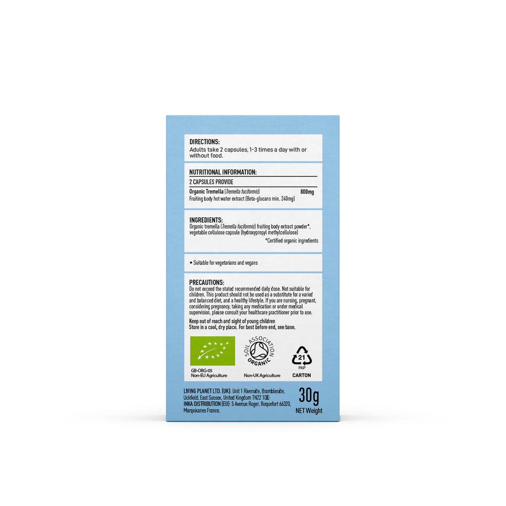 Tremella, also known as the ‘Beauty Mushroom’, is a popular ingredient in skincare products throughout East Asia. It is a pretty, translucent mushroom revered for its rich source of polysaccharides. Mushrooms For Life Organic Organic Tremella is a 100% fruiting body extract of snow fungus mushroom grown in Fujian province, China, under nature-identical conditions on organic rice and wood chips. This Organic Tremella is expertly hot water extracted to capture all the valuable water-soluble polysaccharides and beta-glucans. It is organically certified by the Soil Association and is naturally gluten, dairy and soya free and suitable for vegetarian and vegan diets.