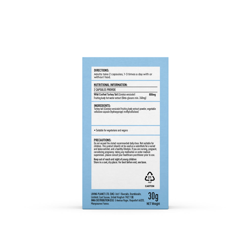 "Traditionally called 'Roof Tile Fungus' in East Asian cultures due to its striking ringed appearance, turkey tail is one of the most extensively researched functional mushrooms.Mushrooms For Life Wild Crafted Turkey Tail is a 100% fruiting body extract "
