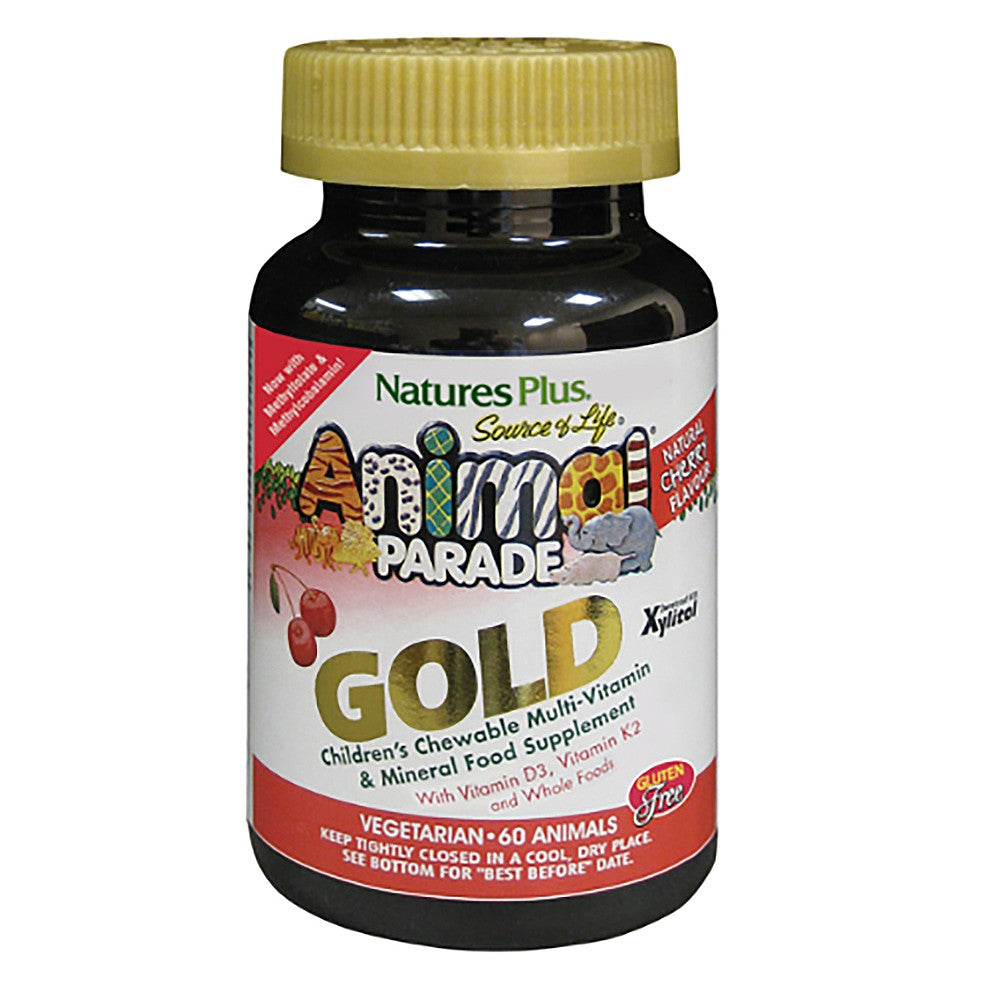 "Animal Parade GOLD Multi Children's Chewable takes this best-selling multi-vitamin and mineral formula to the next level! The award-winning taste continues in an irresistibly delicious sugar-free formula, bursting with natural cherry flavor! Each serving "