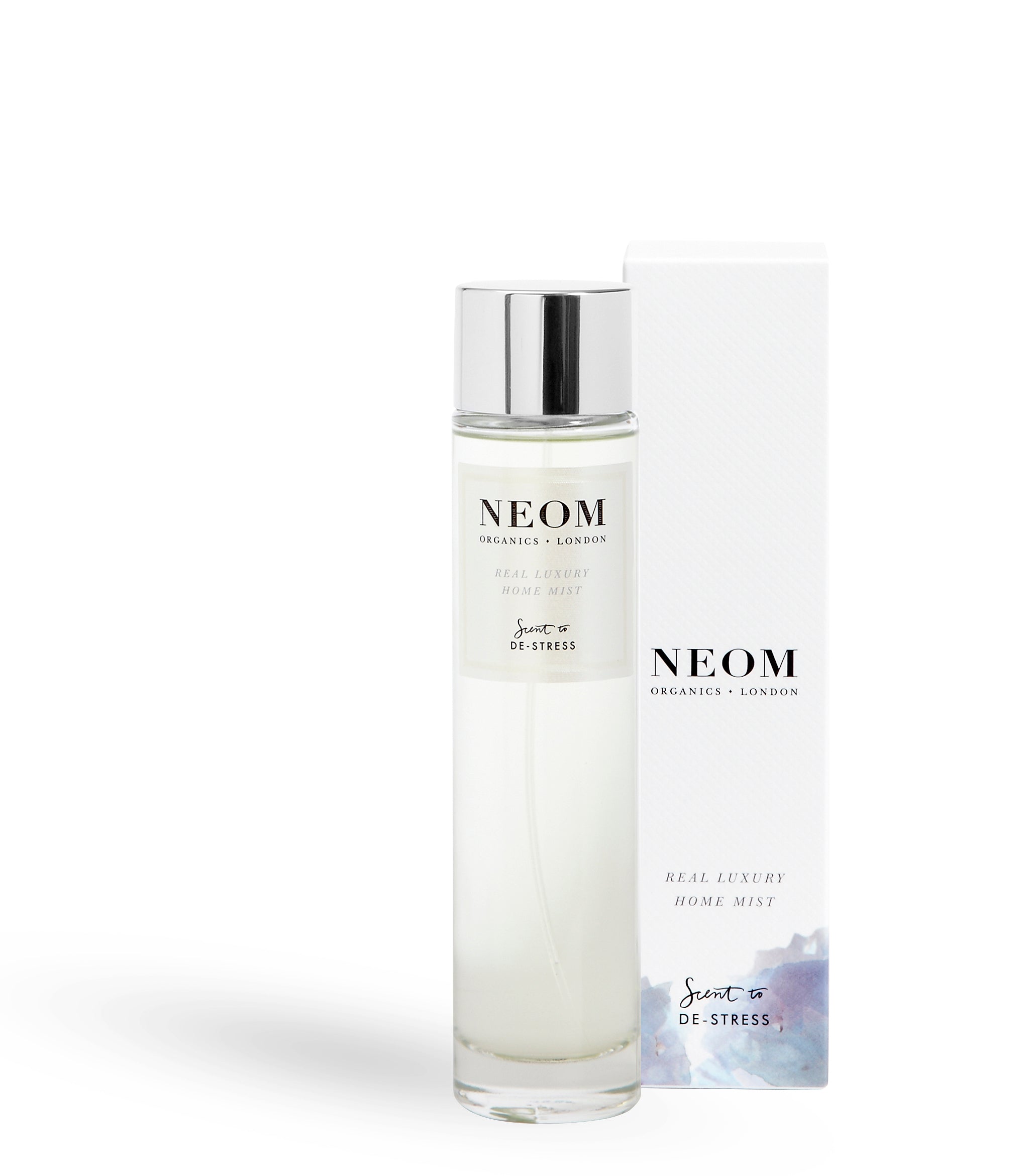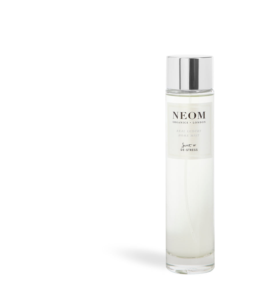 "Cashmere blankets and the flutter of the fireside warmth. A precious moment of utter luxury. Heady jasmine with a little French lavender and the soothing, spicy tones of Brazilian rosewood. Part of Neom Organics London's therapeutic Scent to Instantly De-Stress™ range, this therapeutic scent of 24 pure essential oils has been expertly blended to help you de-stress. The De-Stress Home Mist™ has been specially formulated to instantly fragrance the air or fabrics such as curtains, carpets, sofas and bed linens to slowly release its treatment properties. "