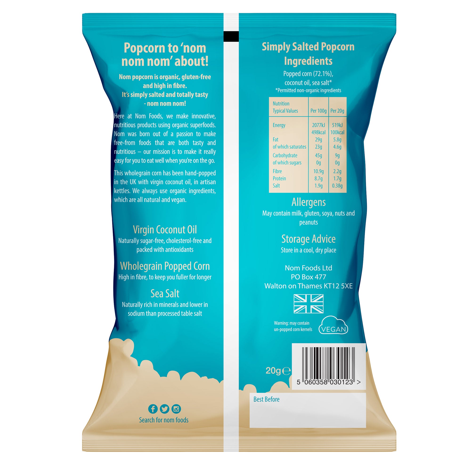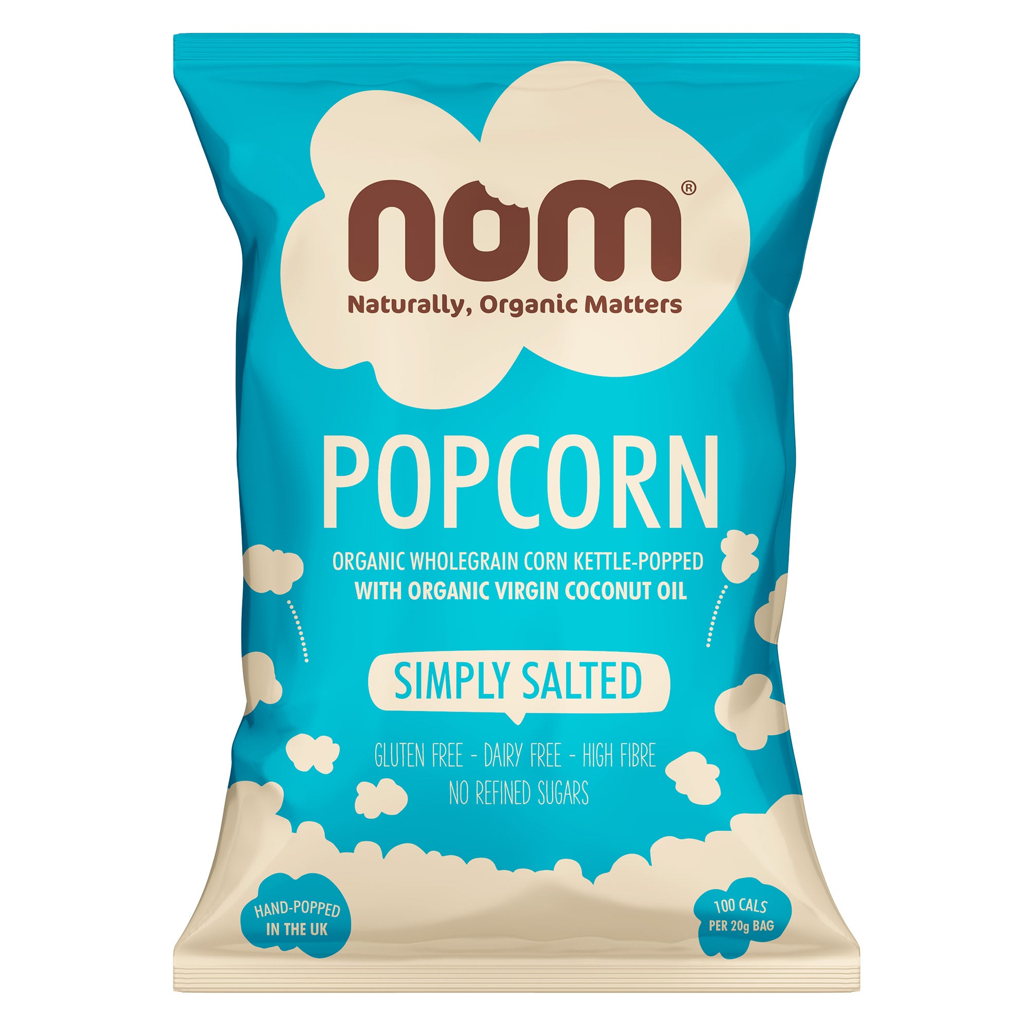 nom organic simply salted popcorn 20g