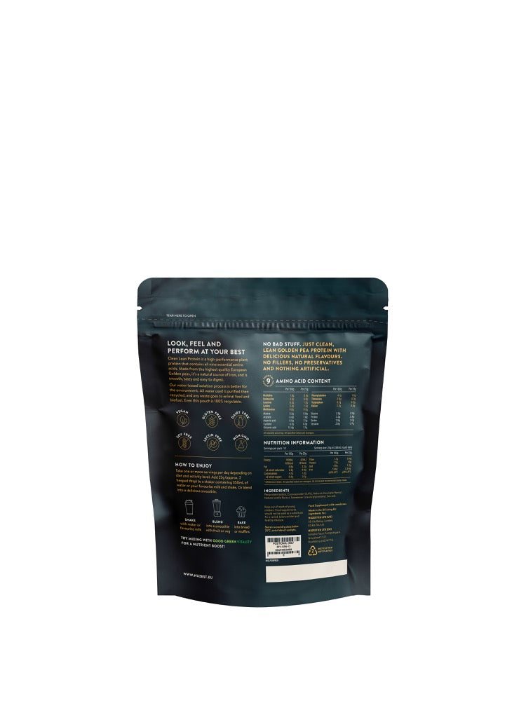 "Nuzest Clean Lean Protein Rich Chocolate is a functional formulation to help support your peak health and performance. Vegan and Keto friendly, free from gluten, GMO, lectins, soy, dairy and xanthan gum. Each serving includes 19g of patented, water-extracted, chemical solvent-free, pesticide-free, complete pea protein with a balanced ratio of amino acids, including all 9 essential amino acids. Nuzest European golden peas are sustainably grown in Northern Europe with no requirement for nitrogen fertiliser or irrigation. Pesticide free. The bio-plastic tubs are made from sugar-cane derived HDPE, a renewable and sustainable resource and one of the most easily recyclable green plastics available. Both tub and lid can be recycled."