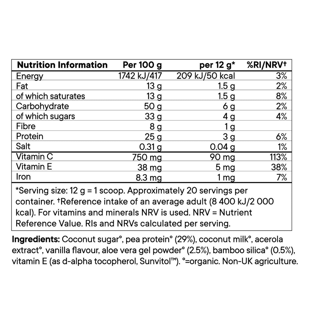 "Aloe Gorgeous is a vegan collagen-boosting powder packed with aloe vera, silica from bamboo, vitamin C from acerola cherry, and vitamin E from sunflowers. Combined, these ingredients are the perfect mix for boosting your body's natural collagen making ability. Your body needs the right amino acids, vitamins, polysaccharides and nutrients to create collagen.As we age, our body's natural collagen production reduces, having an impact on the health of our hair and nails. Boosting your body's collagen production can play a role in strengthening damaged hair and nails as well as skin. Packed with Aloe Vera: Aloe Vera is a polysaccharide which is known for its powerful antioxidants properties, proven to help protect your skin from UV-induced damage and everyday stressors. 3g of organic pea protein in every serving, naturally high in Lysine - an essential amino acid used in the creation of collagen."
