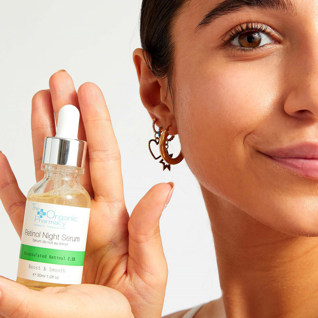 "Our powerful smoothing Retinol Night Serum with 2.5% Lecithin encapsulated Retinol boosts collagen, refines pores and corrects pigmentation. Encapsulating Retinol supports its delivery and skin penetration. This expert formula has been clinically proven to reduce wrinkle surface by 50%*. *Clinical test results after 28 days of once a day application. Suitable for Vegans. "