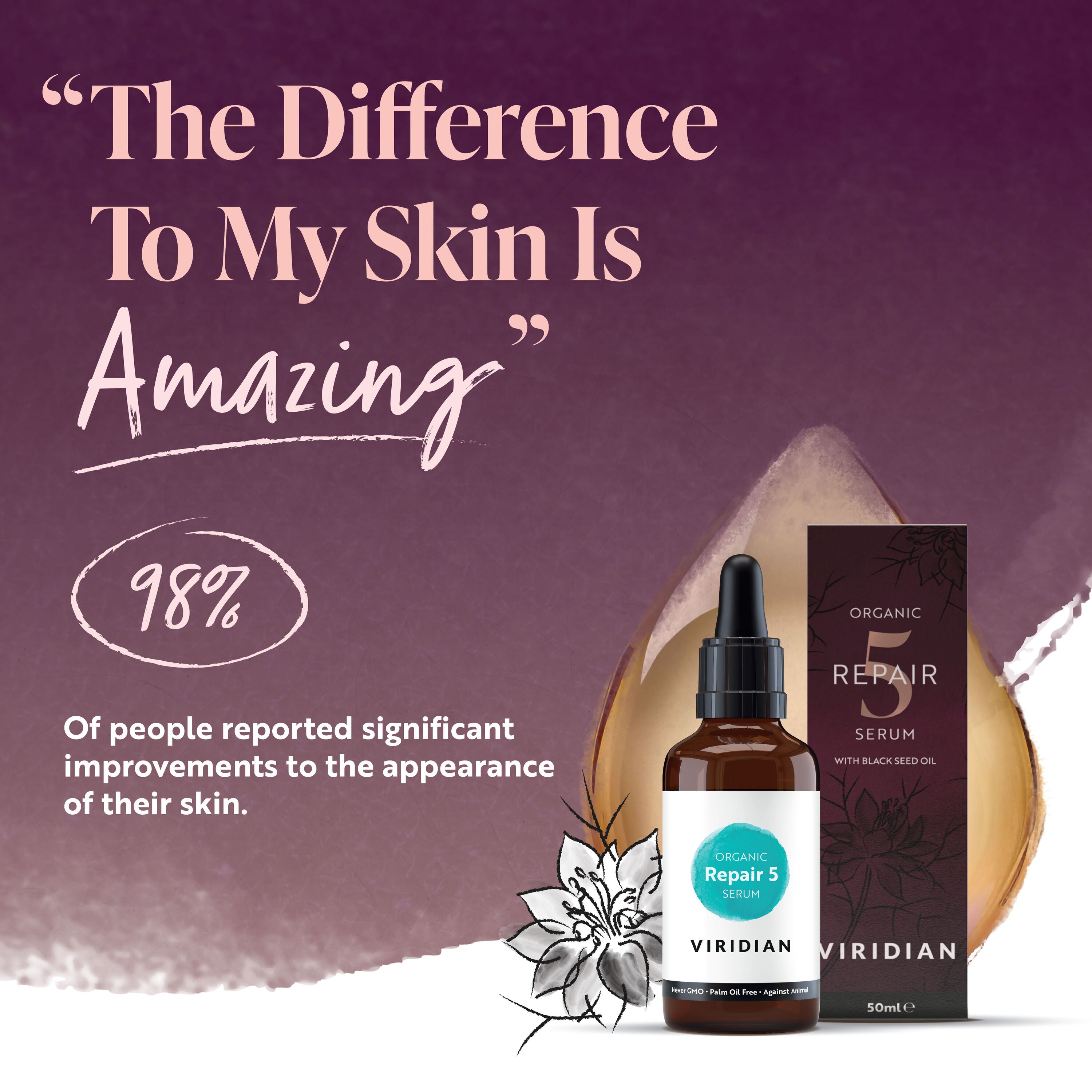 "Organic Repair 5 serum is an award-winning skincare product featuring a blend of five well-researched natural oils – black seed, flaxseed, lavender, chamomile and safflower."