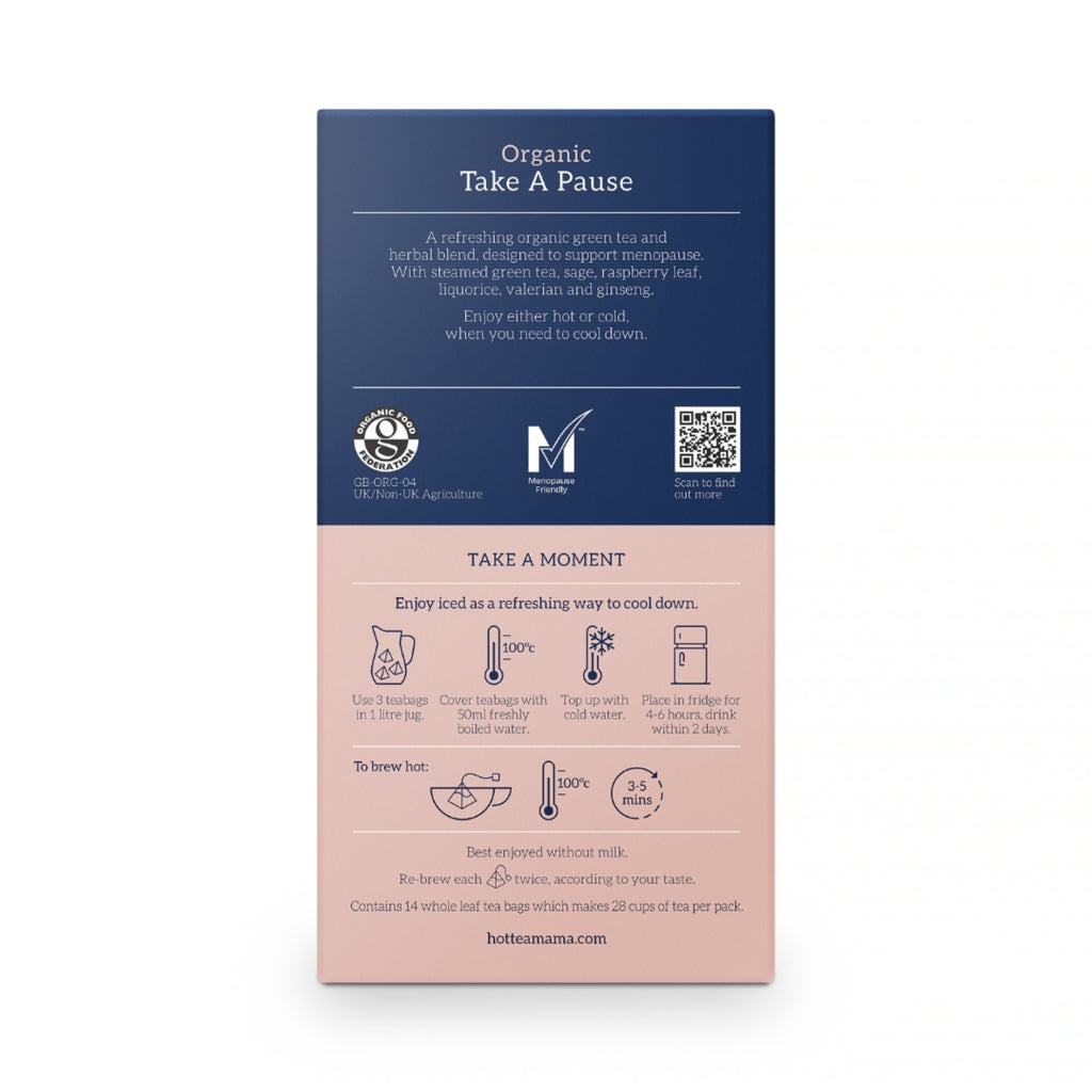 "This organic green tea and herbal blend is a refreshing blend of steamed green tea and herbs. With added benefits of being certified menopause friendly, with ingredients that can support some of the most common symptoms of perimenopause. From hot flushes, to anxiety and sleep issues, brain fog and heavy blood flow, it has herbs that have been used traditionally to support these issues. Organic whole leaf green tea is brilliant as a low caffeine alternative to coffee, to give a gentle caffeine lift. Alongside this, raspberry leaf, ginseng, valerian, sage and liquorice are added. These have been shown in small scale studies to support uterine wellness, memory, sleep and hot flush relief. Delicious brewed as an iced tea if you suffer, keep it chilled in the fridge so it's on hand whenever you need to cool down. This unique blend is made with 100% organic and natural ingredients, is gluten free and vegan friendly, made with plastic free and biodegradable packaging. Each bag can make 2 cups of tea or more - don't throw it away, re-brew it.Each pack contains 14 biodegradable pyramid tea bags which can make 28 cups of tea - don’t thrown the bag away. Pop it in your food bin when you're done, as it is 100% compostable."