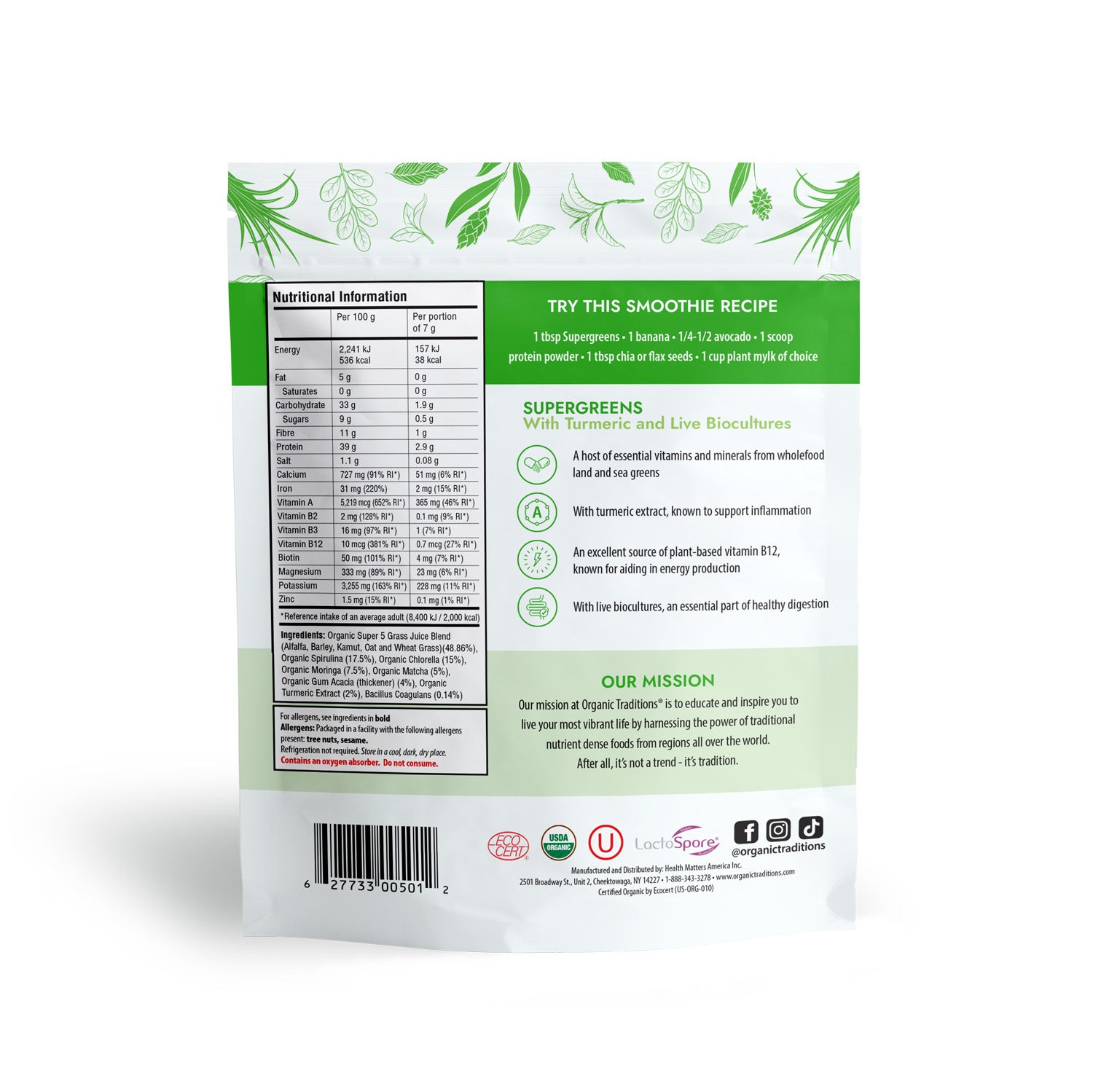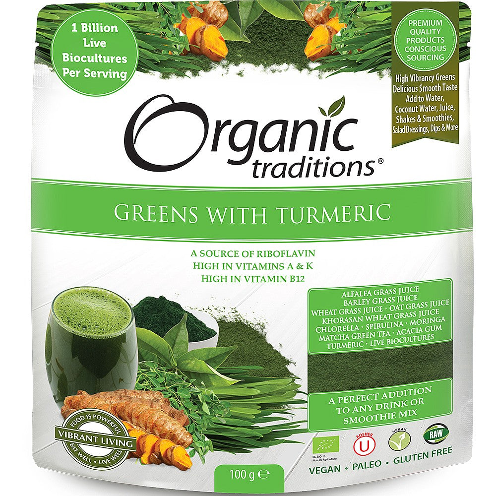 Organic Traditions Supergreens with Turmeric and Live Biocultures 100g