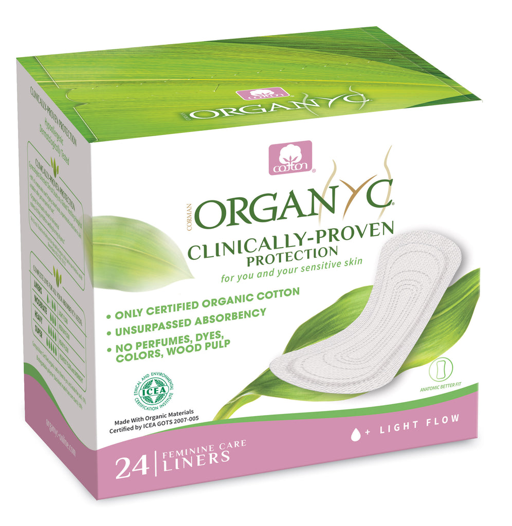 Organyc Panty Liners with 100% Organic Cotton are naturally absorbent and help to prevent skin irritation. Hypoallergenic
