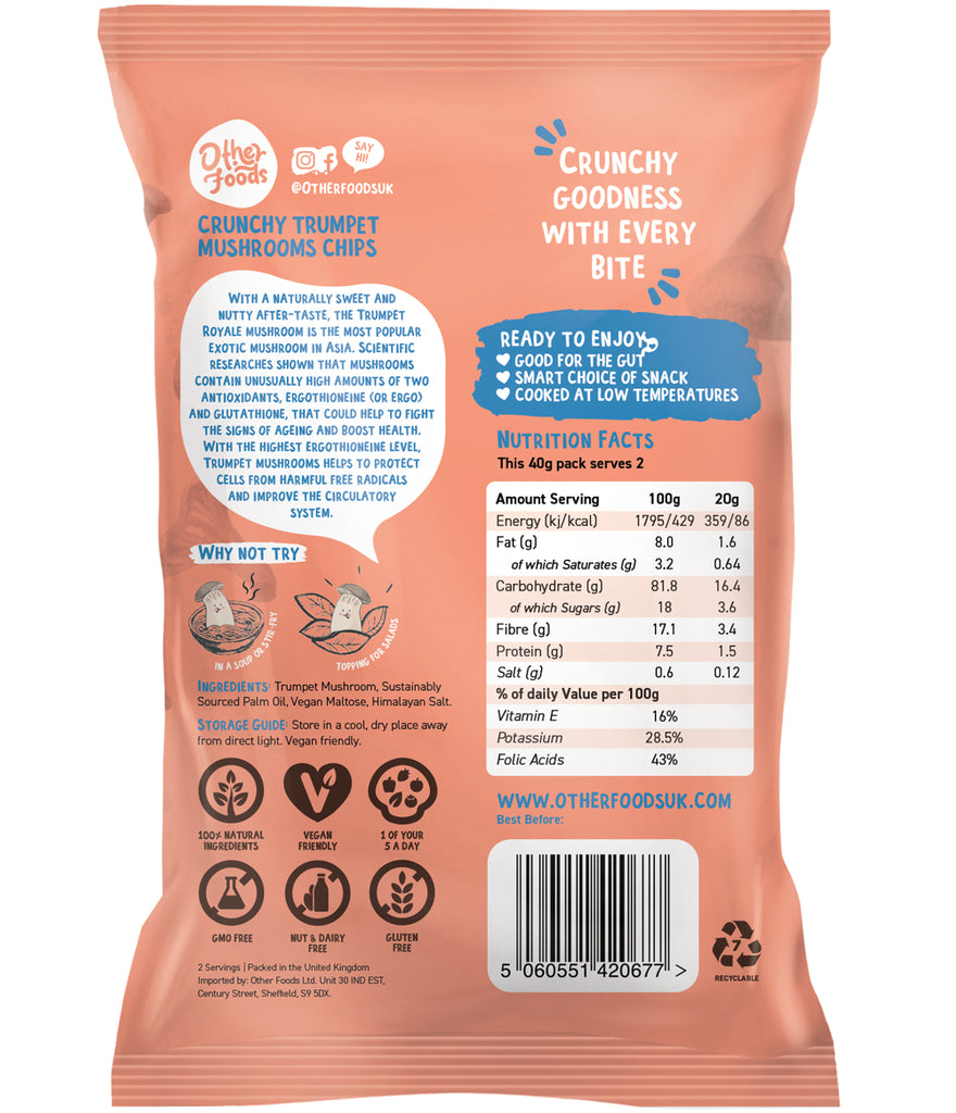 Other Foods Crunchy Trumpet Mushroom Chips 40g