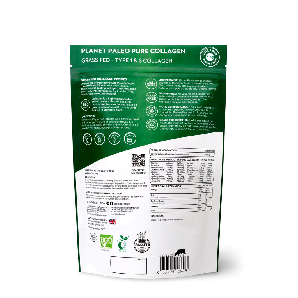 "Pure Collagen contains 100% highly absorbable collagen peptides, sourced from the hides, bones and connective tissue of pasture-raised cows."