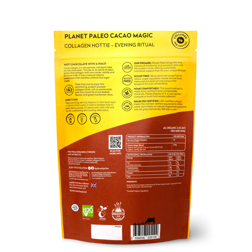 "Cacao has been used for centuries as a health and ceremonial elixir in Central American cultures, and is revered for its flavour and heart-warming effects.We have blended the magic of cacao with nourishing pasture-raised Pure Collagen for a new twist on a hot chocolate that will warm your body and nourish your soul. Cosy up, relax, set some intentions and indulge in a cup of Pure Collagen Cacao Magic."