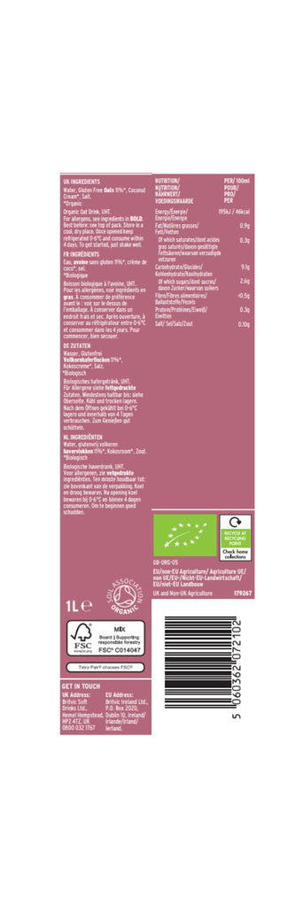 "There’s everything to love about our delicious barista oat m*lk. It’s been perfectly crafted for coffee with a silky micro-foam, it’s low in fat and made with only organic, gluten-free British oats. We take only the best organic oats, blend them with water, a touch of coconut cream and a pinch of sea salt to make our delicious m*lk. Plus, we never add oils, gums or anything artificial. (Because that’s not love). "