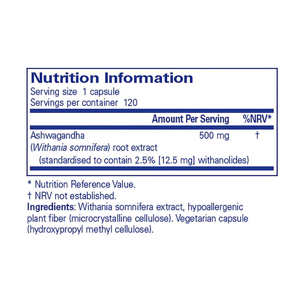 Pure Encapsulations Ashwagandha provides 500 mg of high potency ashwagandha extract in each vegetarian capsule and is standardised to provide a guaranteed level of active phytonutrients known as withanolides. Ashwagandha has a long-history of use and is one of the most prized botanicals in traditional Ayurvedic medicine. Modern research interest has also resulted in several human clinical trials documenting its use.