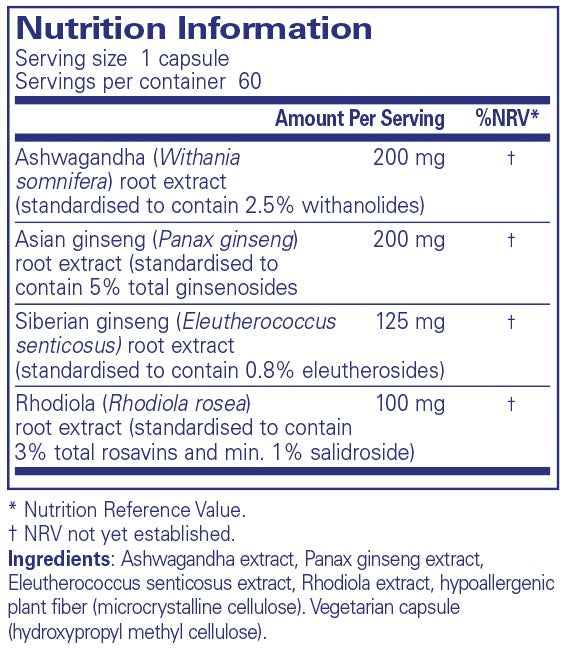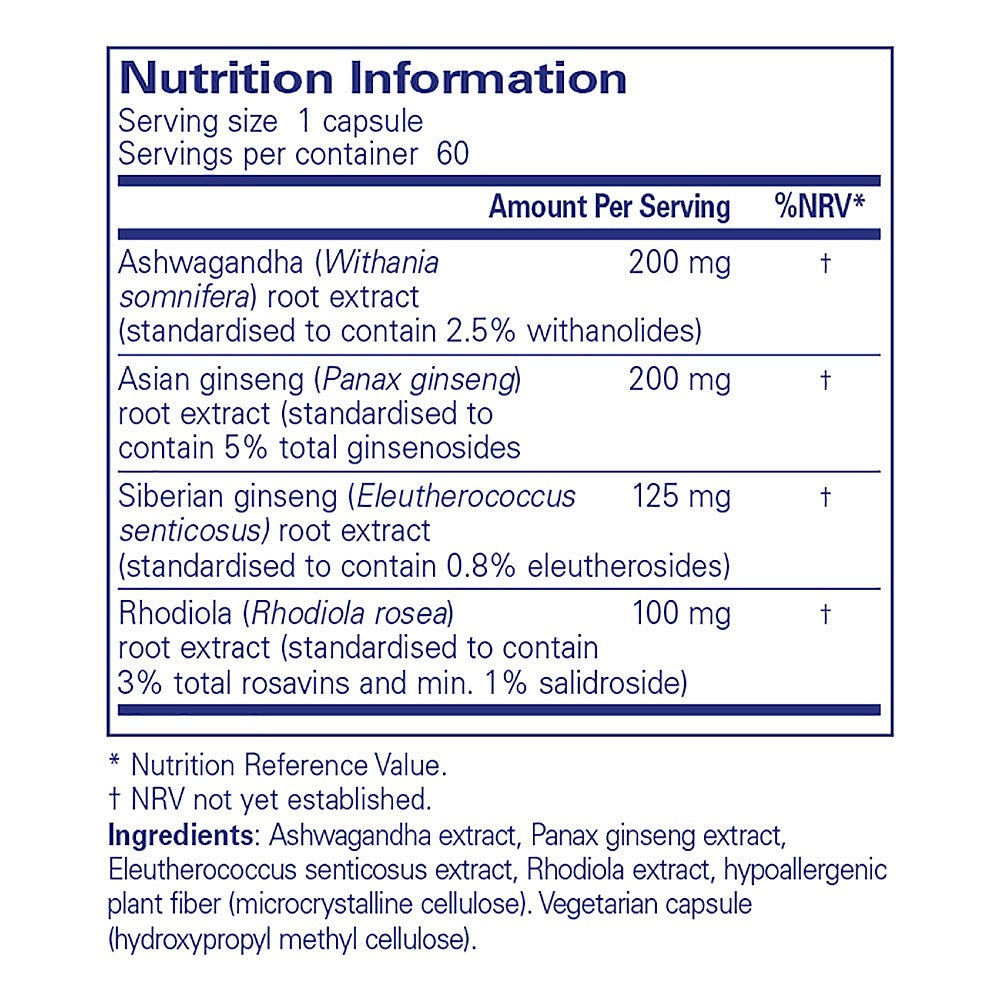 "Ashwagandha Xtra features a blend of key adaptogenic herbs including Ashwagandha, Panax ginseng, Siberian ginseng and Rhodiola for broad-spectrum and synergistic support. Traditionally used for hundreds of years these are some of the most prized herbs in ancient cultures for health and wellbeing. Ideal for supporting busy and demanding modern lifestyles. "