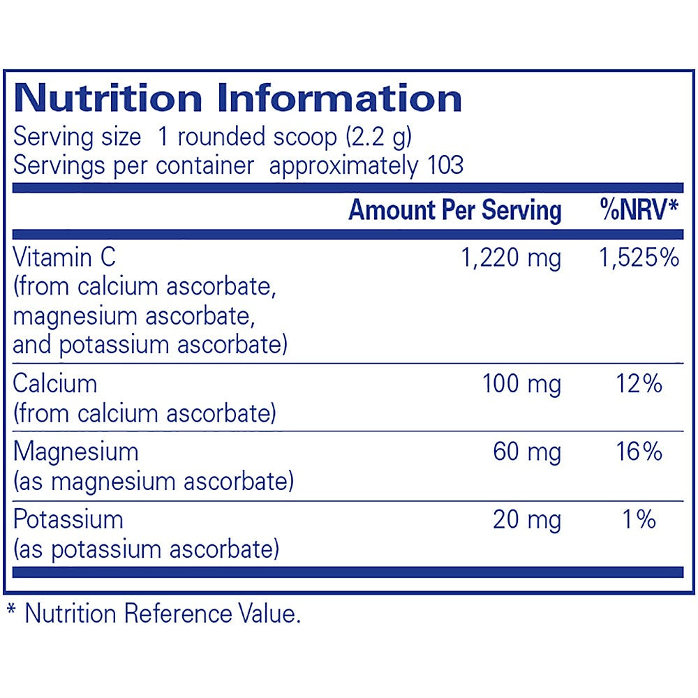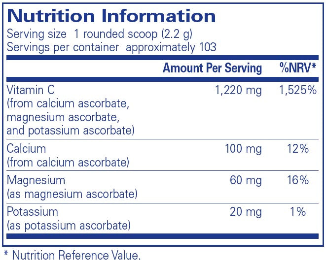 "Buffered Ascorbic Acid Powder combines calcium ascorbate, magnesium ascorbate, and potassium ascorbate to create a neutral pH vitamin C for sensitive individuals. Vitamin C contributes to normal psychological function and functioning of the nervous system. Vitamin C contributes to the reduction of tiredness and fatigue. "