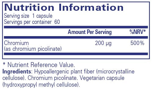 "Chromium (picolinate) 200 mcg features chromium as chromium picolinate, a highly bioavailable form of chromium. Chromium contributes to the maintenance of normal blood glucose levels. "