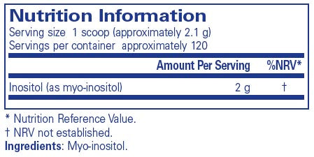 "Inositol Powder features myo-inositol, the primary form of inositol used in clinical research. Each scoop provides 2 g which is a dose consistent with clinical use and not easily achievable with capsules. Highly soluble, pleasant tasting, pure and additive-free inositol that mixes well into water for convenient use. "