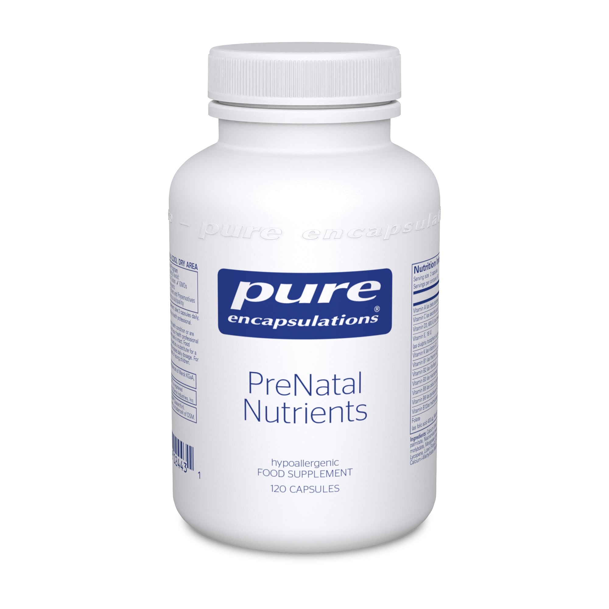 "Pure Encapsulations PreNatal Nutrients is formulated to support women of childbearing age, pregnant women and lactating women. Provides essential vitamins, minerals and nutrients based on scientific recommendations for pregnancy. Convenient and easy to take vegetarian capsules."