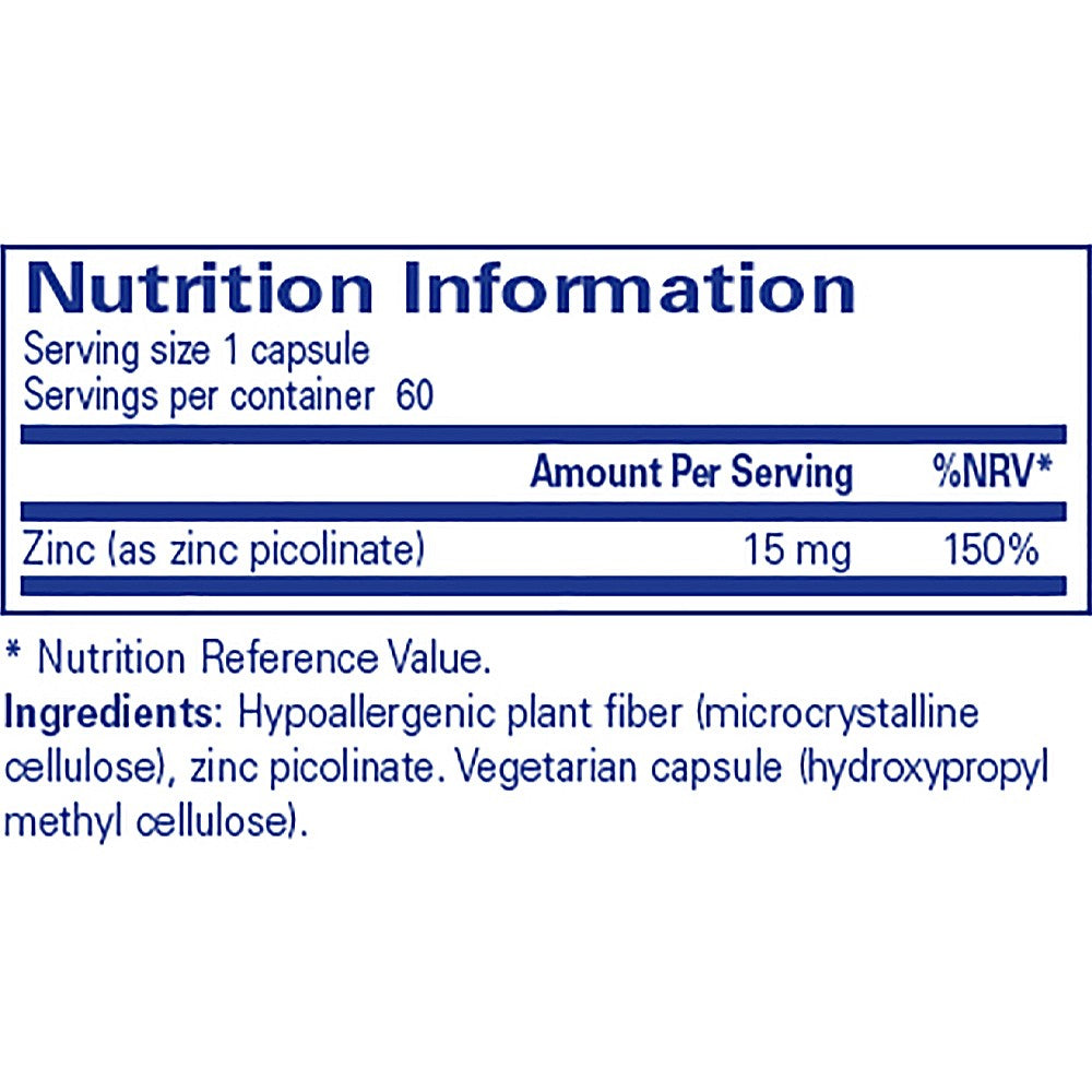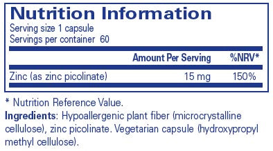 Notify Me When Available"Zinc 15 provides 15 mg of zinc as zinc picolinate, a high absorption mineral chelate. Zinc contributes to the maintenance of normal hair, skin and nails. Zinc also contributes to the normal function of the immune system and normal cognitive function."