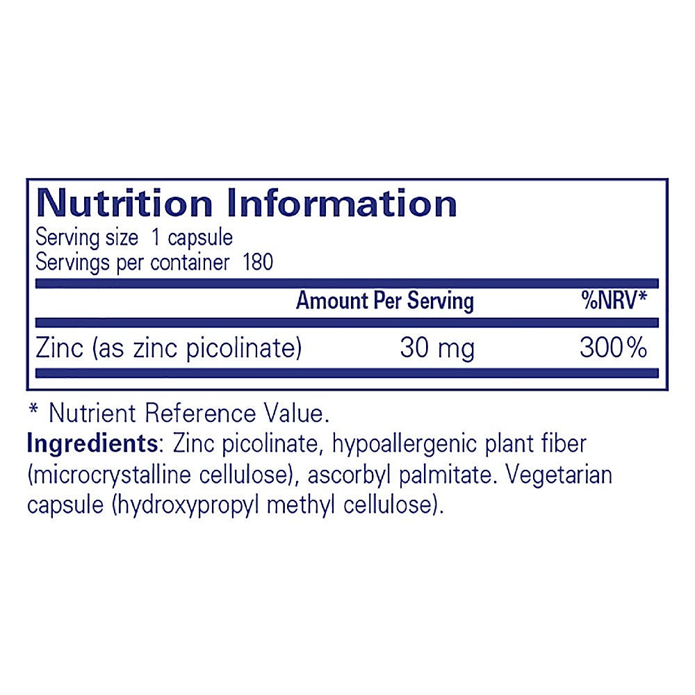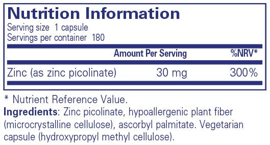 "Zinc 30 provides 30 mg of zinc as zinc picolinate, a high absorption mineral chelate. Zinc contributes to the maintenance of normal hair, skin and nails. Zinc also contributes to the normal function of the immune system and normal cognitive function."
