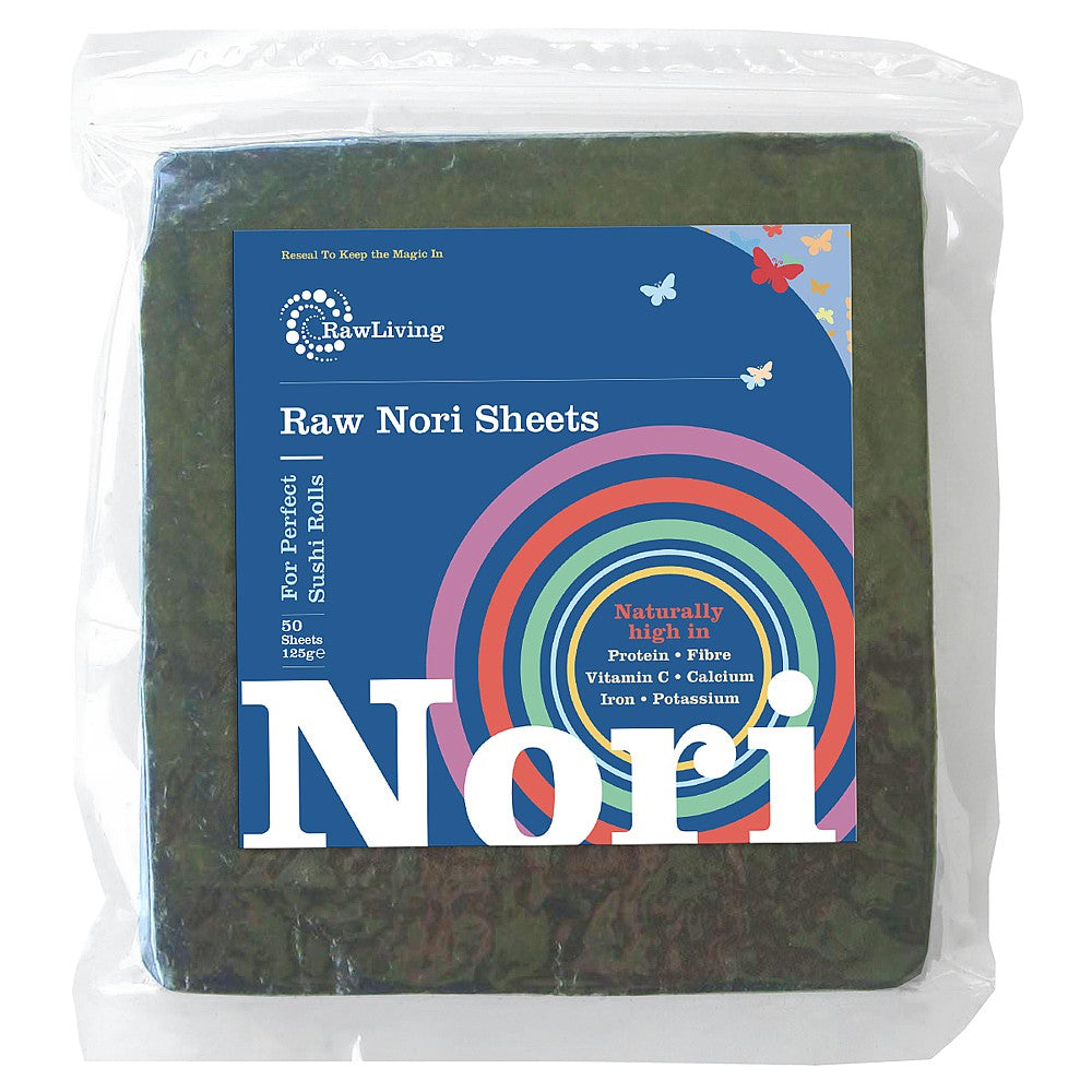 Notify Me When Available"Nori is most commonly known for its use in sushi, but it can also be used to make a nutrient dense wrap for almost any food. Crumbled Nori adds a salty crunch to salads and soups while thin slices of Nori are also great as an edible garnish for any meal. Raw Living's raw Nori is the highest quality raw Nori that we have found available on the market - it doesn't disintegrate like some other brands. It is certified organic at source and regularly tested for radiation and pesticides. This Nori is grown in a single location just below the Sea of Japan in a 4,000 acre growing site that is classified as “Certified Organic Growing Waters.” To achieve this International Standard, the harvest area waters are tested monthly, and must test 100% clean continuously for minimum of 3 years before receiving organic status. The seaweed is harvested and brought to the production facility. After arrival the Nori is inspected and separated. The Nori Sheets are made from only the highest grade (upper 15% of the total harvest). After the product is low temperature dried it is cut to size and packaged."
