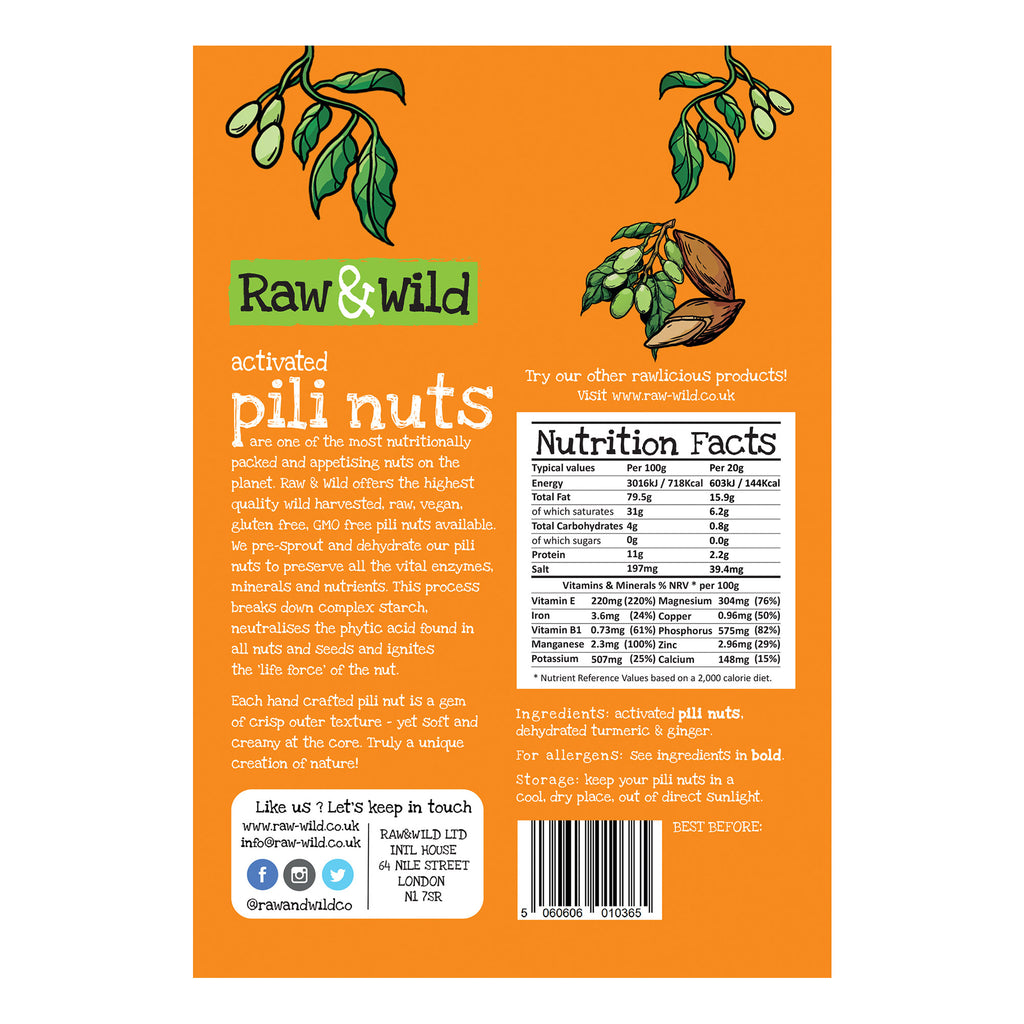 Raw & Wild Activated Pili Nuts - Turmeric & Ginger 70g