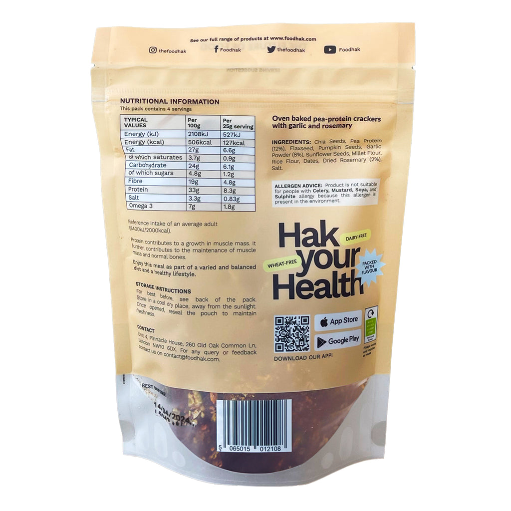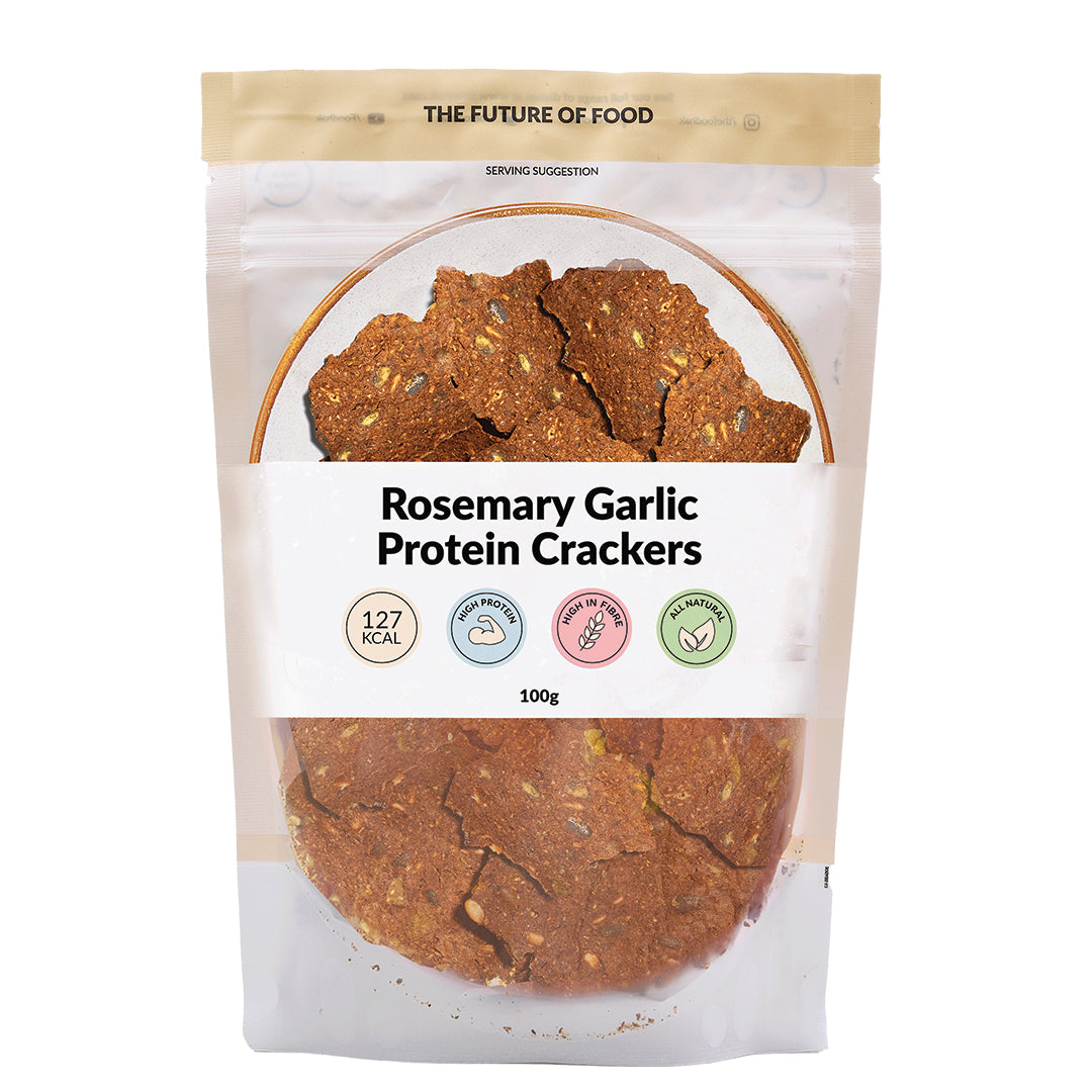 "Enjoy the very best cosy flavours, in cracker form! Our delicious Rosemary Garlic Protein Crackers will have you hooked with just one bite. Plus, with 33g of clean, natural protein in every bite, they're great for your body too."