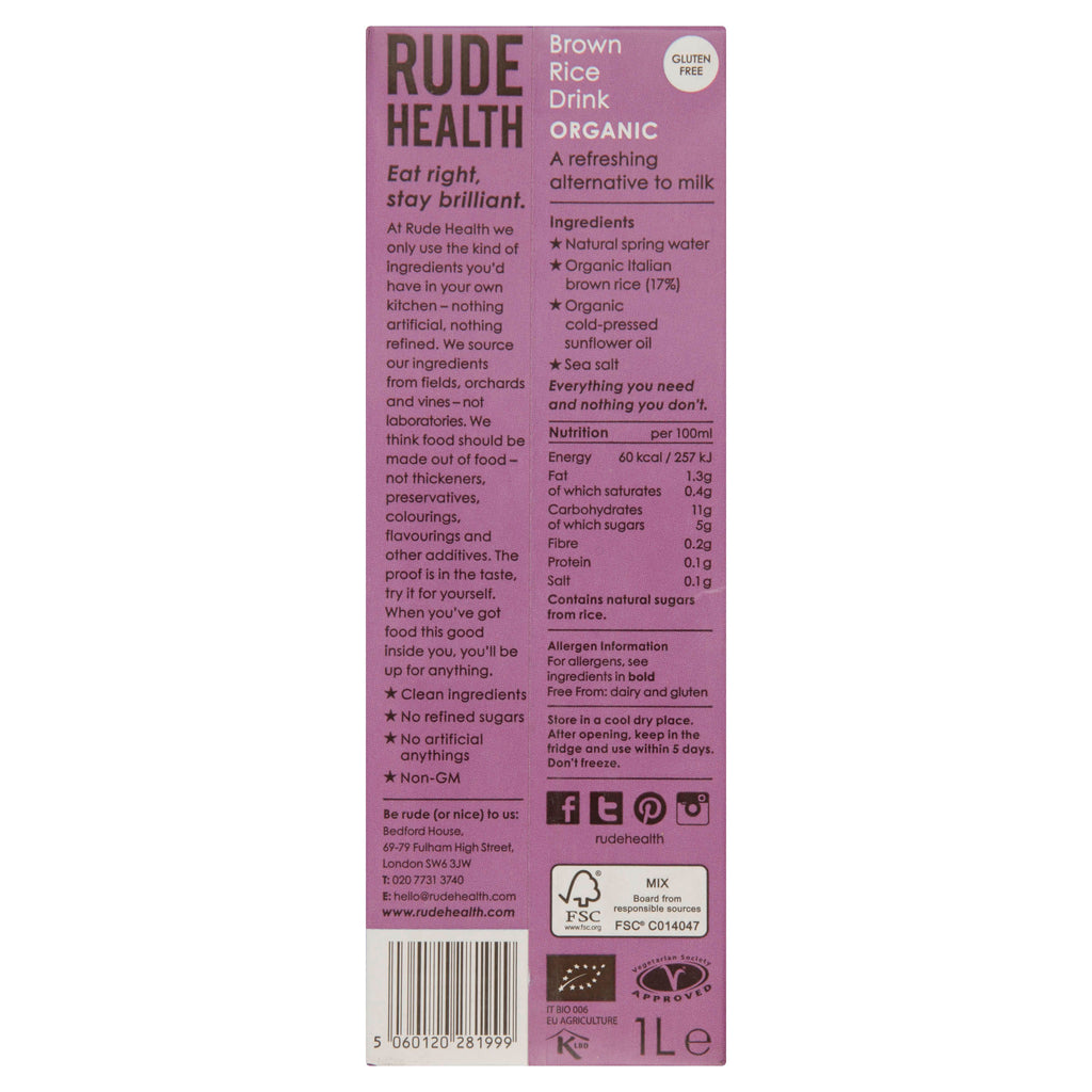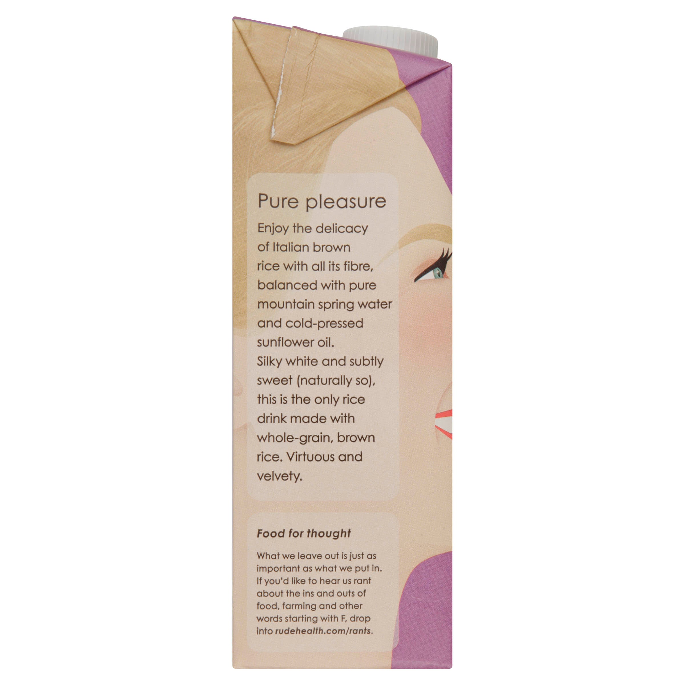 "Enjoy the delicacy of Italian brown rice with all its fibre, balanced with pure mountain spring water and cold-pressed sunflower oil. Silky white and sublty sweet (naturally so), this is the only rice drink made with whole-grain, brown rice. Virtuous and "