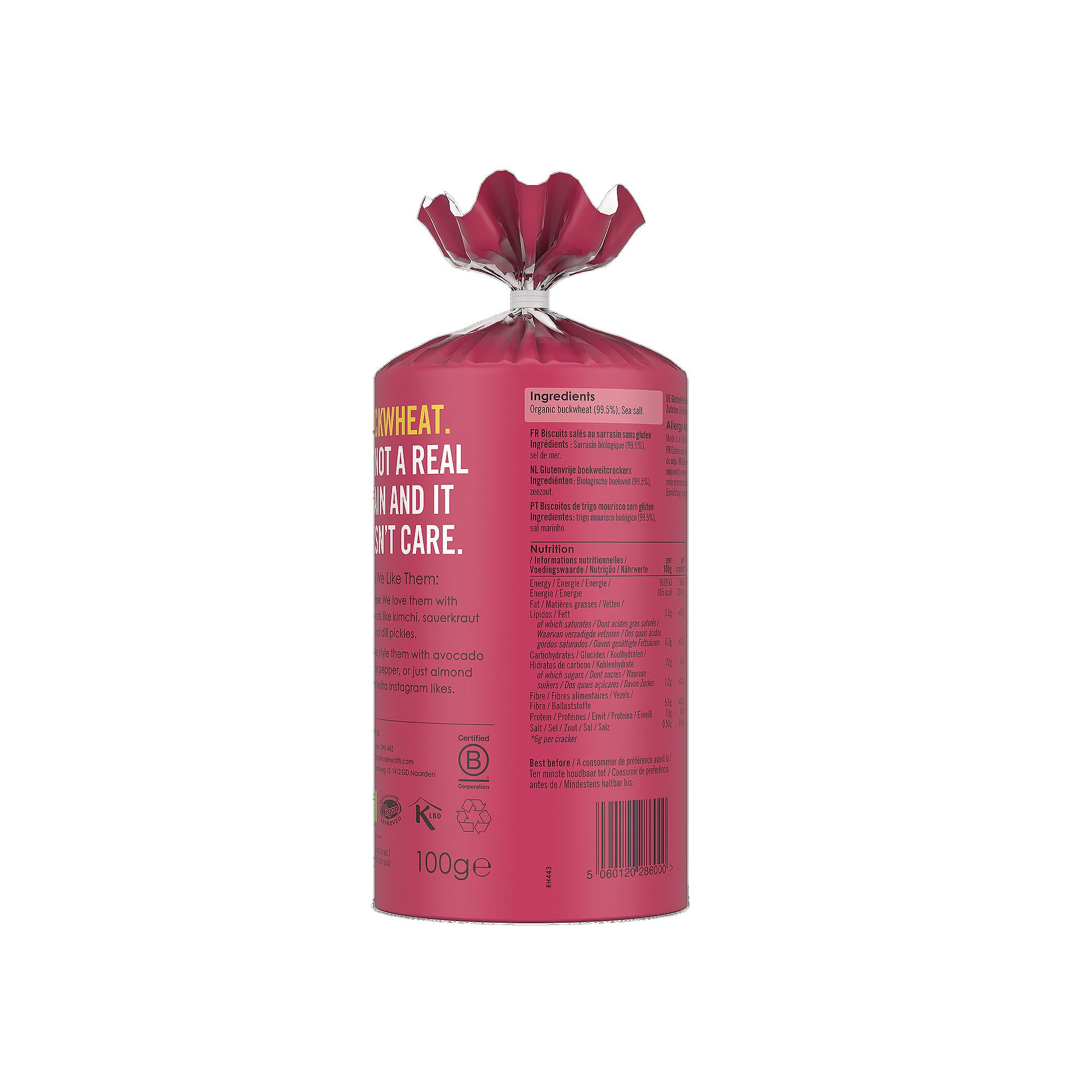 Notify Me When Available"Buckwheat is a pseudo-grain, more closely related to rhubarb than wheat. It isnt what you'd call refined. It has a course, dark texture that works perfectly as a light puffed cracker. It packs a more flavourful punch, so you can top it with something strong-tasting. We love these crackers with fermented foods like kimchi, sauerkraut and dill pickles and style them with avocado and cayenne pepper, or just almond butter for instagram likes."