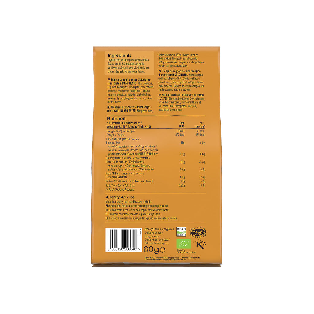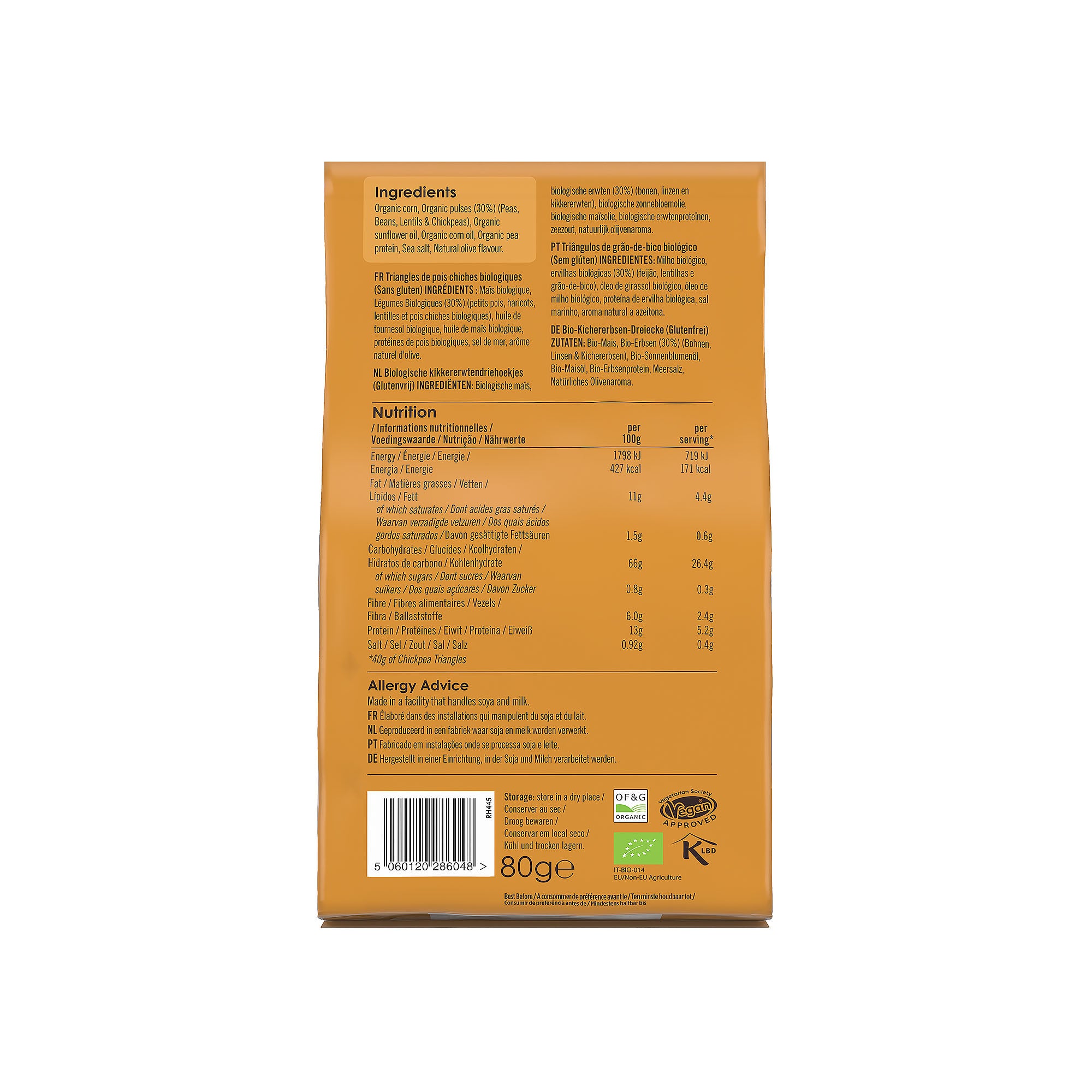 Dip. Dunk. Munch. Enjoy as a megascoop with dips of salsa and sour cream. Devour a pack in front of a trashy film. These organic and gluten-free chickpeas triangles are a healthy way to indulge.