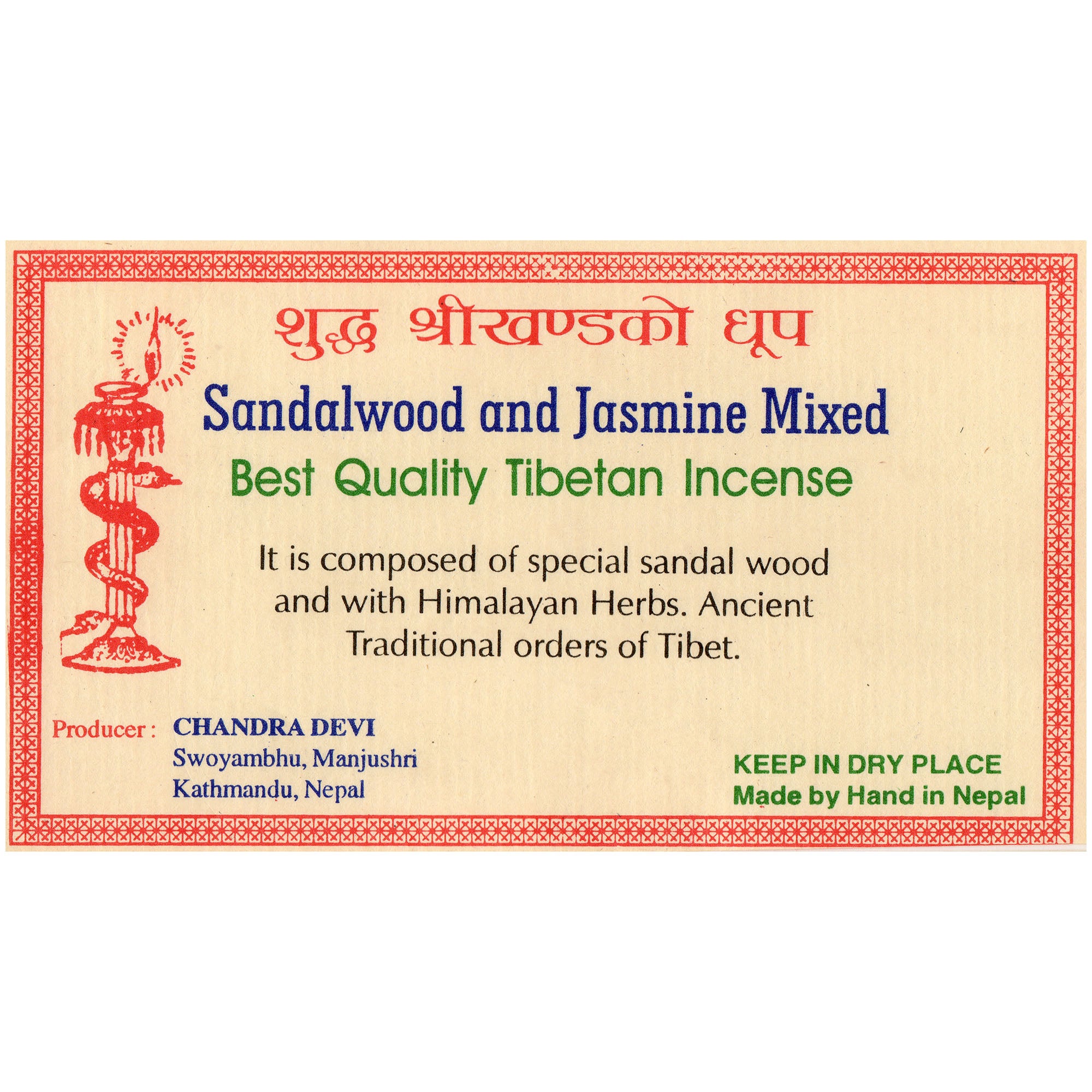 In this memorable Tibetan Buddhist incense, the finest aromatic sandalwood is carefully blended with the vibrant fragrance of jasmine and more than 30 other ingredients, some unique to the Himalayan region. The resulting aroma is an exotic scent that lingers with lasting satisfaction.Tibetan incense is crafted by crushing and mixing pure ingredients into a paste, then rolling them into long sticks without a wood or bamboo core before cutting them to the desired length. This method results in naturally thicker sticks and ensures that nothing is wasted when they are burned. Since little or no essential oils are used for flavouring, the incense retains its quality for many years once thoroughly dried.Because Tibetan incense sticks are thicker than Indian-style incense, a suitable holder is recommended; many options are available within this product section. Alternatively, a ceramic bowl filled with sand also works well.Origin: 17cm long
