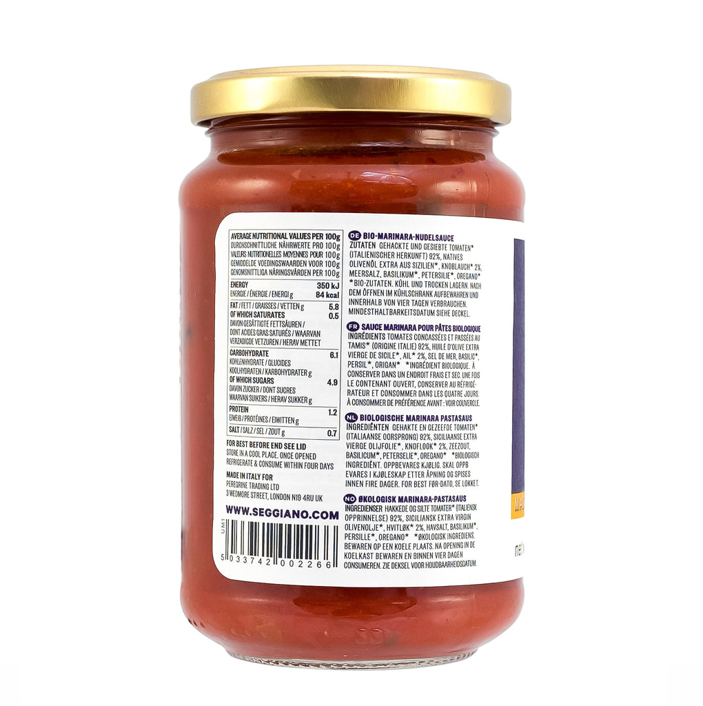 "A vegan version of the classic Marinara recipe from Naples, with a generous amount of fresh garlic. This chunky pasta sauce is made for us in Sicily, using naturally sun sweetened Italian tomatoes and Sicilian extra virgin olive oil from an award winning "