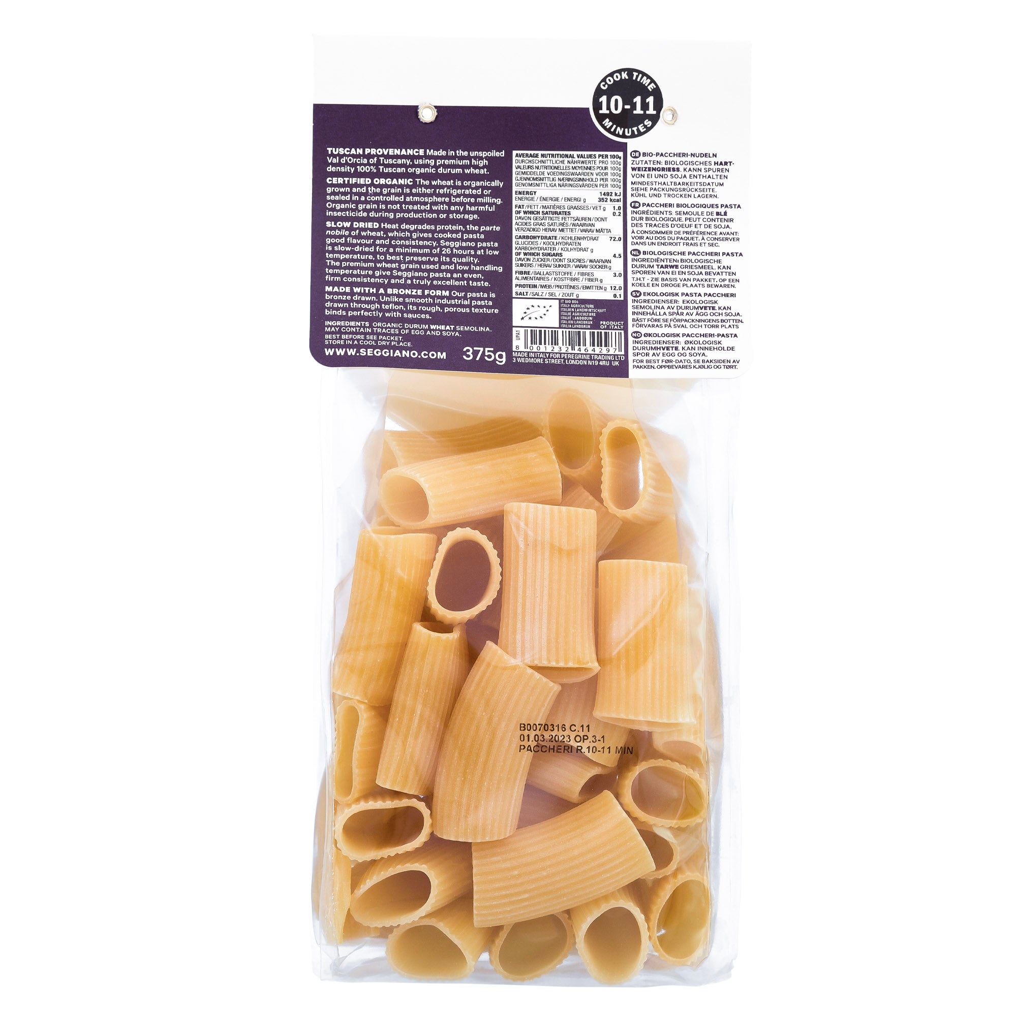 "Made from a certified organic Tuscan wheat, the pasta is slow dried and formed using bronze moulds."