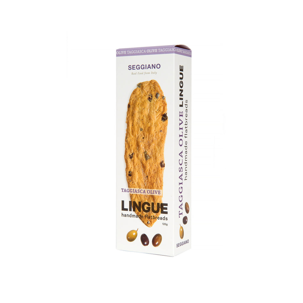 "Seggiano thin, crispy olive flatbreads are a delicious and light antipasto snack for serving with cheeses, soups, dips and vegetables. The dough contains the simplest authentic ingredients, rolled out by hand, then baked to a crispy, golden flatbread. Perfect for antipasto snacking and an essential for any cheese board."