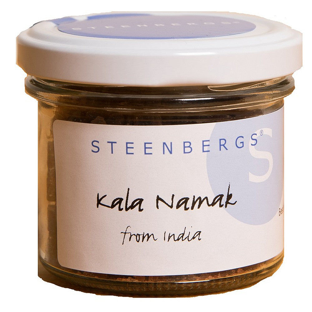 "Steenbergs kala namak is a traditional Indian black salt, which is actually a dark purple-pink in colour. Indian black salt has a faintly sulphurous and smokey flavour which disappears during the cooking process. Unsurprisingly, kala namak is the best salt for use in Indian cuisine, especially North Indian cooking, and is traditionally used in making salt blends like chaat masala and the summer drink, jal jeera. Also, great in face masks and is traditionally used to help the symptoms of bloating, muscle cramps and water retention."
