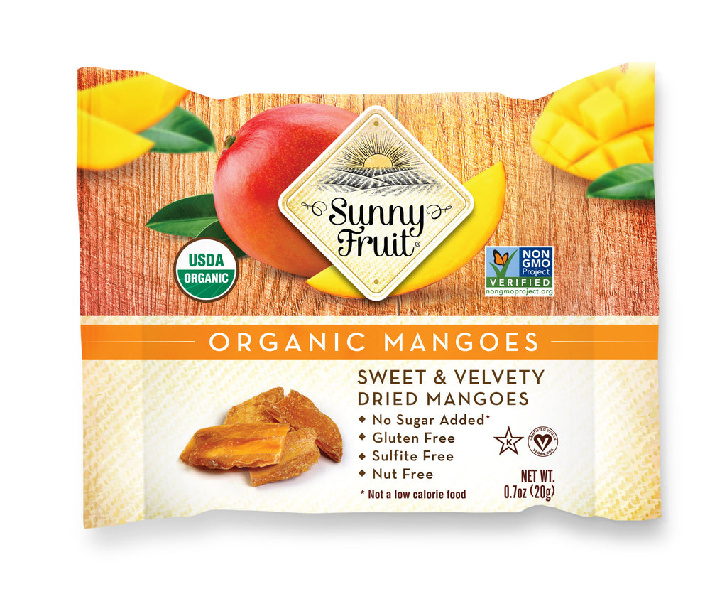 "Sweet & velvety, all natural Sunny Fruit Organic Dried Mangoes are an ideal, on-the-go, healthier snacking option. Meticulously dried for ideal sweetness, these organic dried mangoes are an excellent source of dietary fiber, antioxidants, potassium, calcium, iron and magnesium. All Sunny Fruit products are sun-dried for ultimate sweetness and packed at source to ensure the highest quality with no artificial additives. Vegan, Kosher, Halal, Non-GMO, Gluten Free, Nut Free & Sulphite Free."