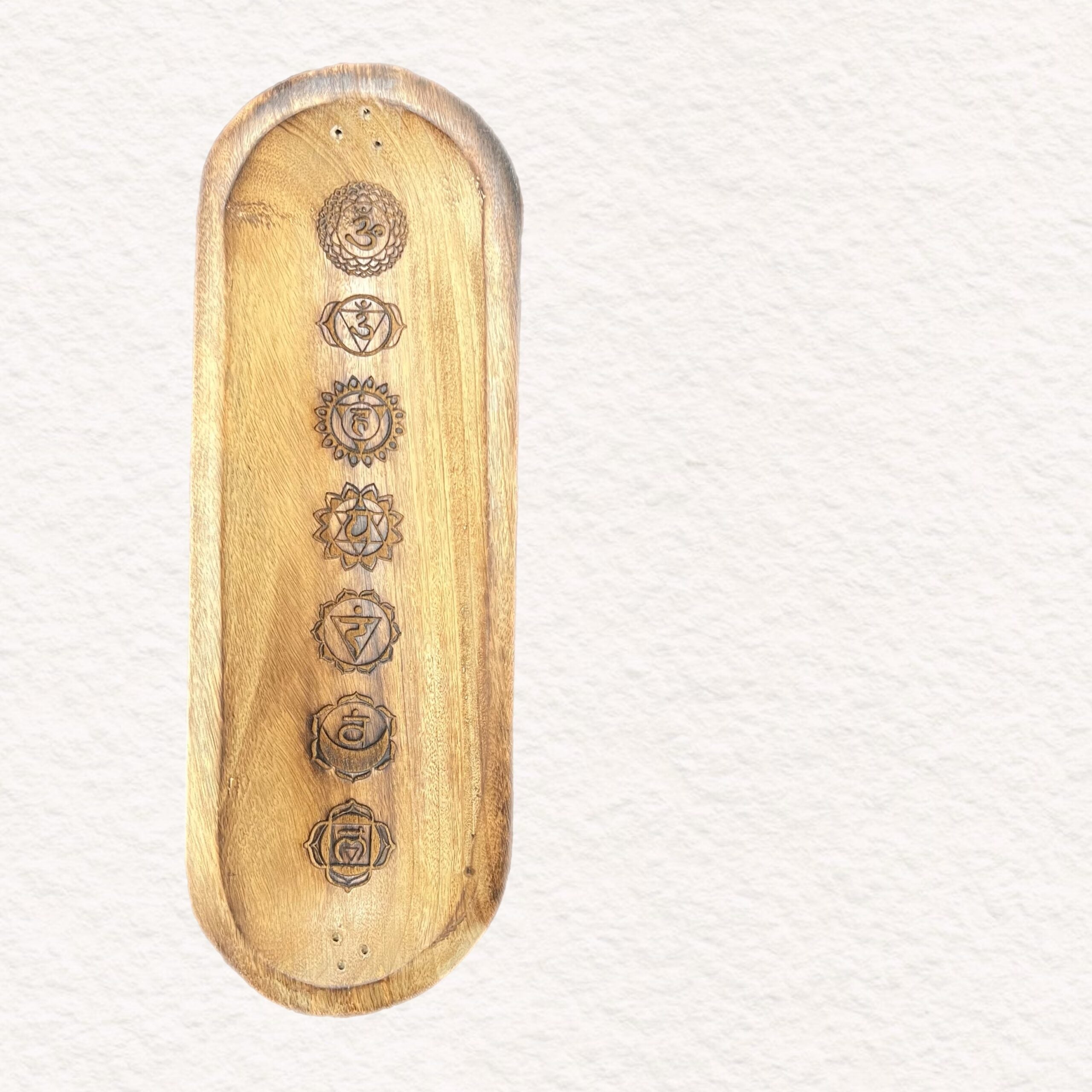 "7 Chakra wide wooden incense holder.Exquisitely made in heavy wood, this incense burner is extra wide to ensure it catches all ash, cleanly and safely. You can burn 1-3 incense sticks at once, making this great for open spaces, yoga studios, spas or out"