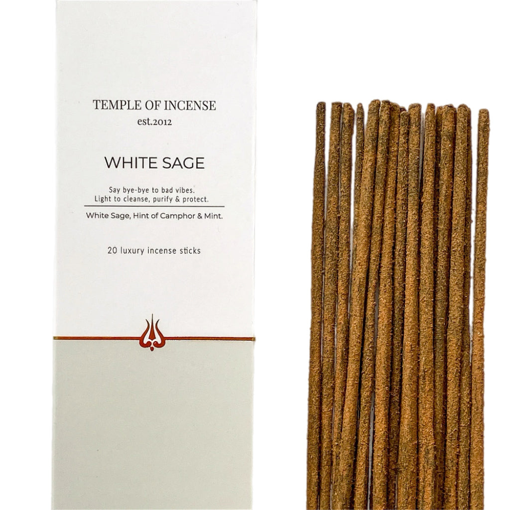 "Say bye-bye to bad vibes. Light these white sage incense sticks to cleanse, purify and protect. All 20 sticks