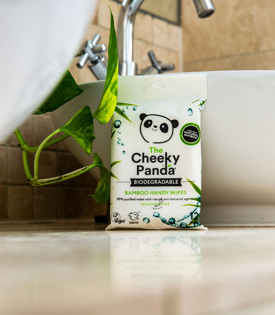 "The Cheeky Panda Bamboo Handy Wipes are nature's answer to keeping clean on the go. 100% biodegradable, infused with 99% purified water and a teeny - weeny splash of natural anti - bacterial ingredients. Silk soft and gentle, use from head to toe. Vegan friendly, loved by babies and their parents too!"