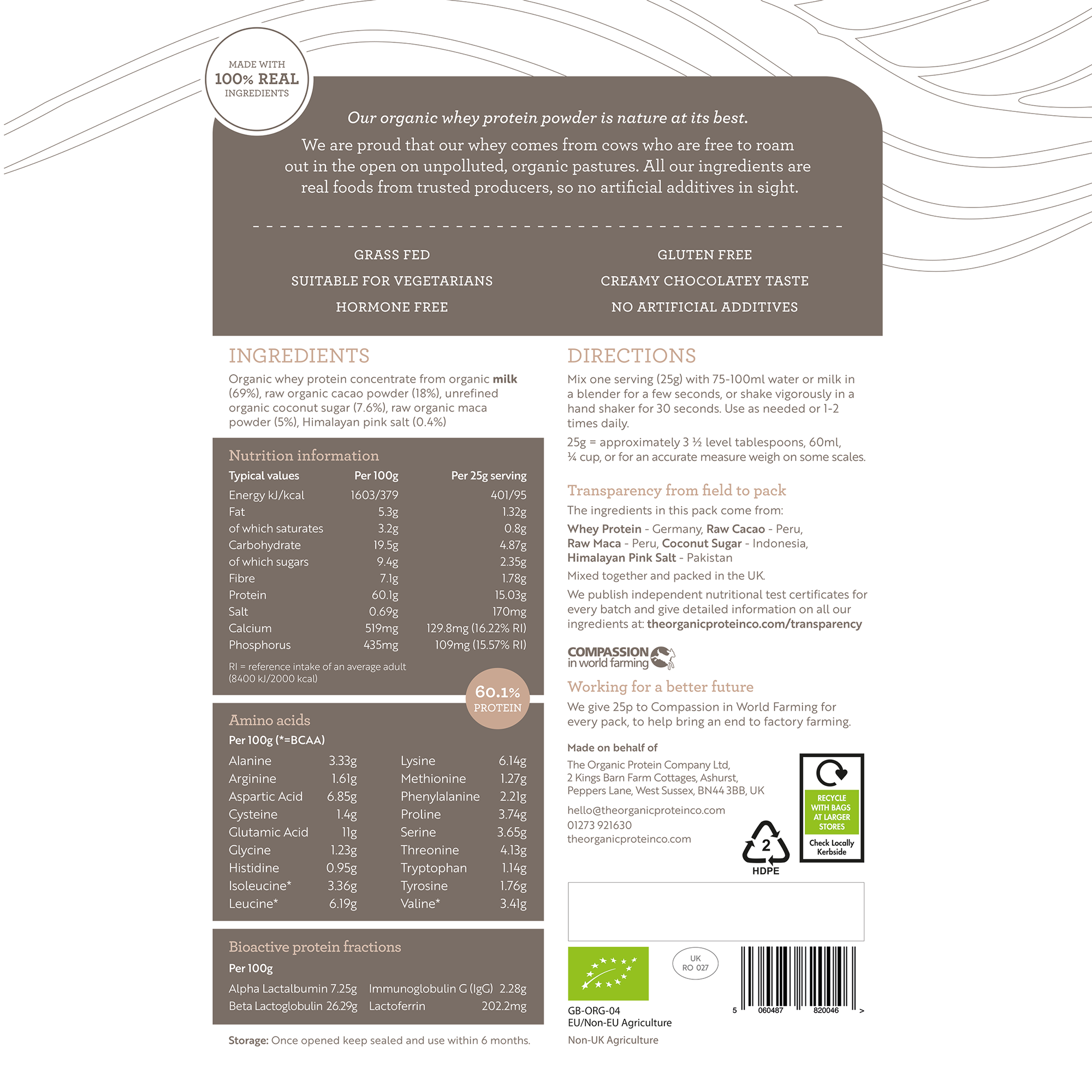 The Organic Protein Co. Raw Cacao & Maca Organic Whey Protein Powder 400g 400g