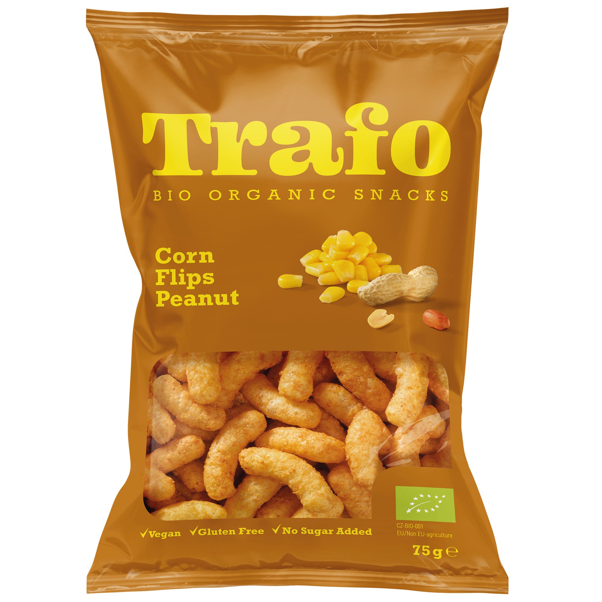 "Trafo Organic Corn Peanuts is an oven-baked snack made from ingredients such as cornmeal, peanut, sunflower oil and sea salt. Enjoy the hearty snack with your friends or at a cozy TV evening for two."
