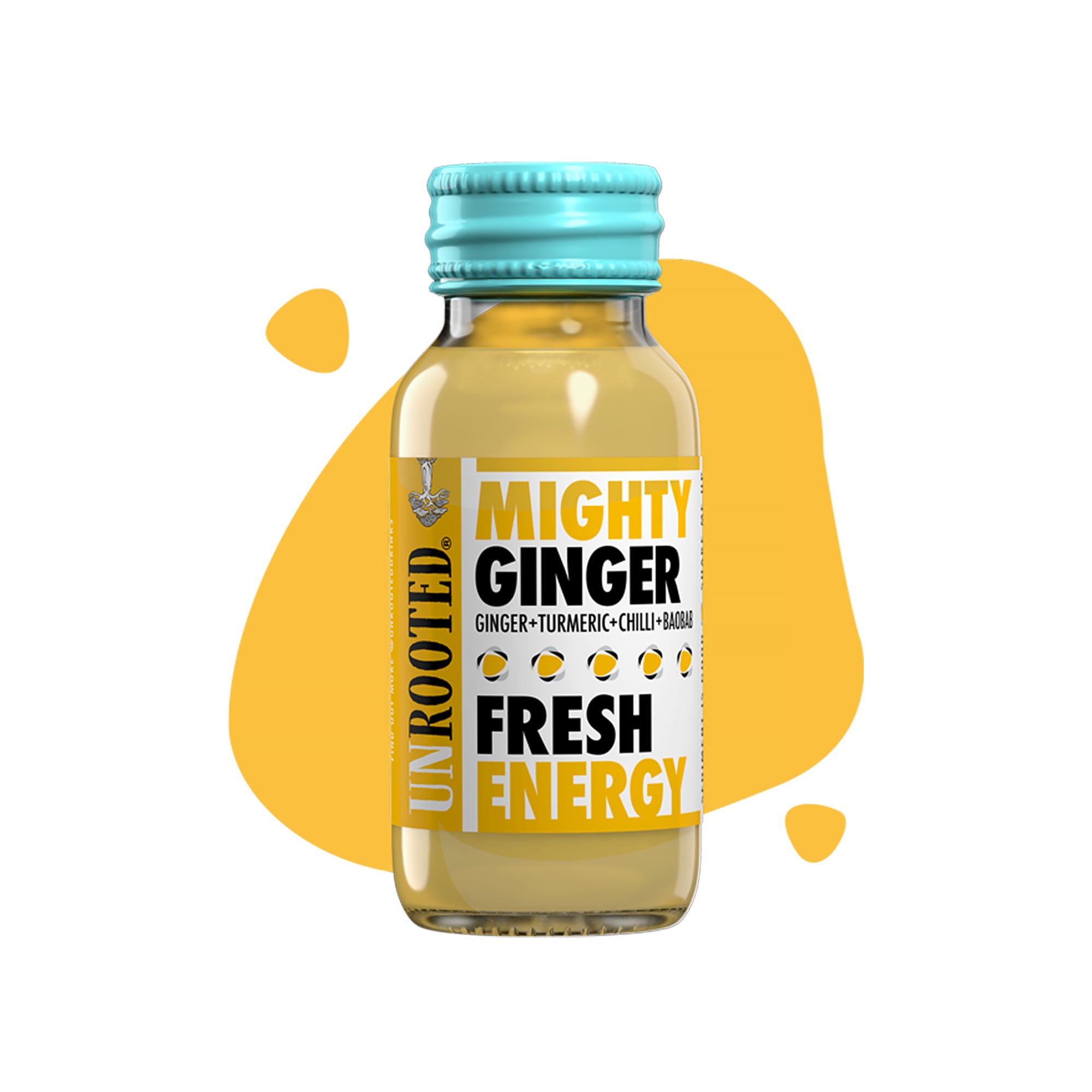 "Your daily ginger & turmeric shot, with a touch of scotch bonnet chilli for added kick. Naturally high in fibre thanks to a teaspoon of Africa's legendary baobab superfruit in each shot. No added sugar, vegan and gluten free."