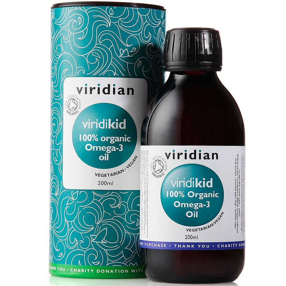 "Organic Viridikid Omega Oil is a select combination of certified organic plant based oils, rich in omega 3 to support kids aged 1-12. Specially formulated for these developing years and recommended alongside ViridiKid Multivitamin & Mineral Formula for a complete programme. Viridikid Omega Oil is pleasantly and naturally flavoured with organic vanilla and organic orange oils. No added sugar, sweeteners, additives, preservatives or colourings. 100% active ingredients formulated by expert nutritionists"