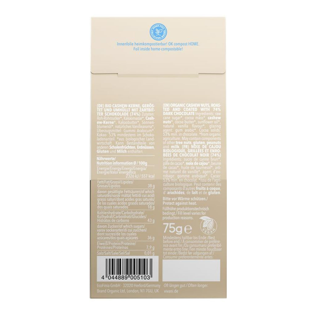 Freshly roasted cashews covered in the finest organic dark chocolate. These delicious treats contain 74% chocolate content. Great for sharing, gifting and a little personal indulgence. Suitable for Vegans. 100% organic.