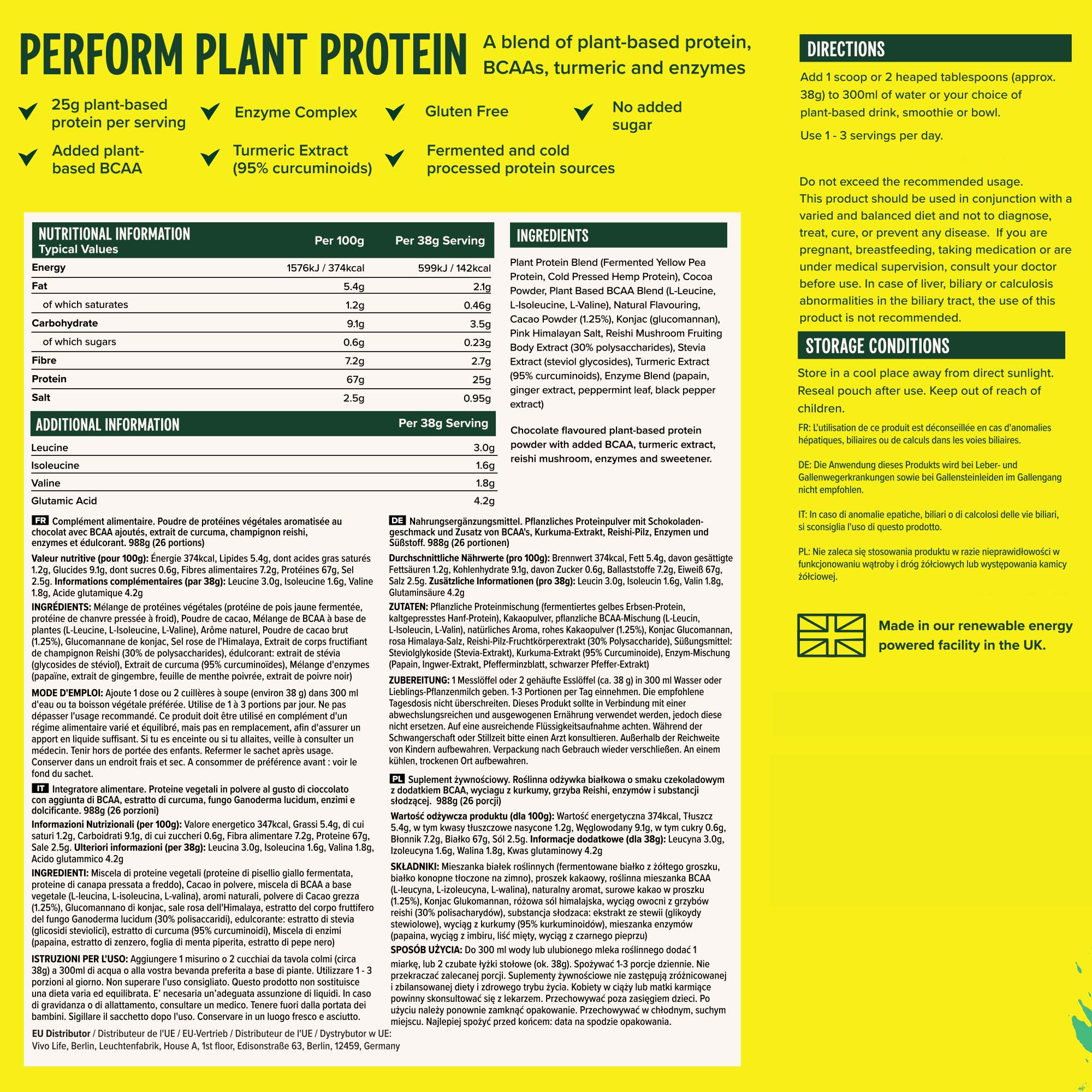 Vivo Life Perform Protein Chocolate Brownie 936g