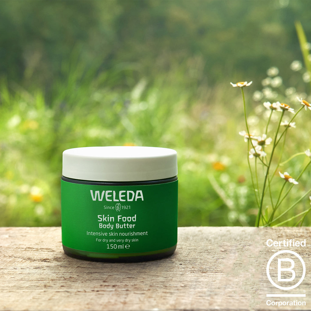 Harness the powers of our Skin Food formulation. Plant extracts of soothing viola tricolor, calendula and chamomile harmonise the skin, while organic shea butter and cocoa butter leave dry skin intensively nourished.Non-greasy and long-lasting hydration, fragranced with aromatic lavender and sweet orange. Perfect for all-over hydration and nourishment. Weleda Skin Food Body Butter is rich in shea and cocoa seed butter, to leave skin feeling velvety soft.