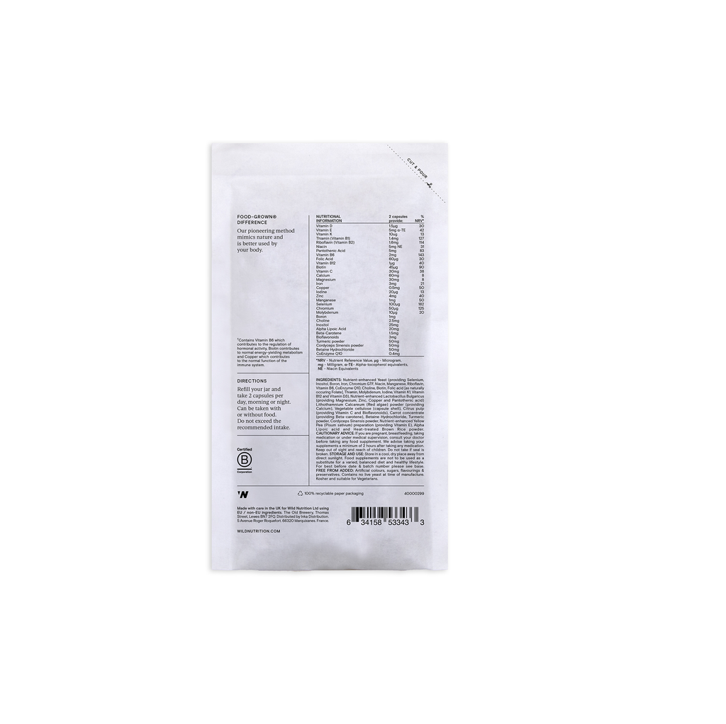 "A carefully considered formulation of Food-Grown® vitamins, minerals and botanicals created for midlife’s shifting nutritional and hormonal needs.Hormone & Energy SupportVitamin B6 contributes to hormonal regulation and Biotin contributes to normal energy-yielding metabolism. Mental Wellbeing & Immune SupportMidlife nutritional needs are different. Pantothenic Acid contributes to normal mental performance, Niacin supports psychological function and Copper contributes to the normal function of the immune system.WHY WILD NUTRITION?In 2013, with over a decade’s experience running women’s health clinics, nutritional therapist Henrietta Norton felt the supplement industry could serve women better. And so, Wild Nutrition was born. Fast forward to today and Henrietta’s Food-Grown® formulations are loved by women across the globe, at all life stages from puberty to postmenopause. Certified B Corp in 2021, Wild Nutrition are the experts in women’s nutritional health.WHY FOOD-GROWN® SUPPLEMENTS?Your DNA is wired to receive nutrition from food, exactly why Food-Grown® ingredients are kept as close to their original food form as possible. No added fillers or binders, just clean, ethically sourced ingredients, evidenced by research and real life. Five gold-standard scientific absorption studies show just how effectively Food-Grown® supplements are absorbed* and retained. Let your body decide.*Data from five published scientific absorption studies on Food-Grown® ingredients: Vitamin C, Zinc, Selenium and Vitamin D."